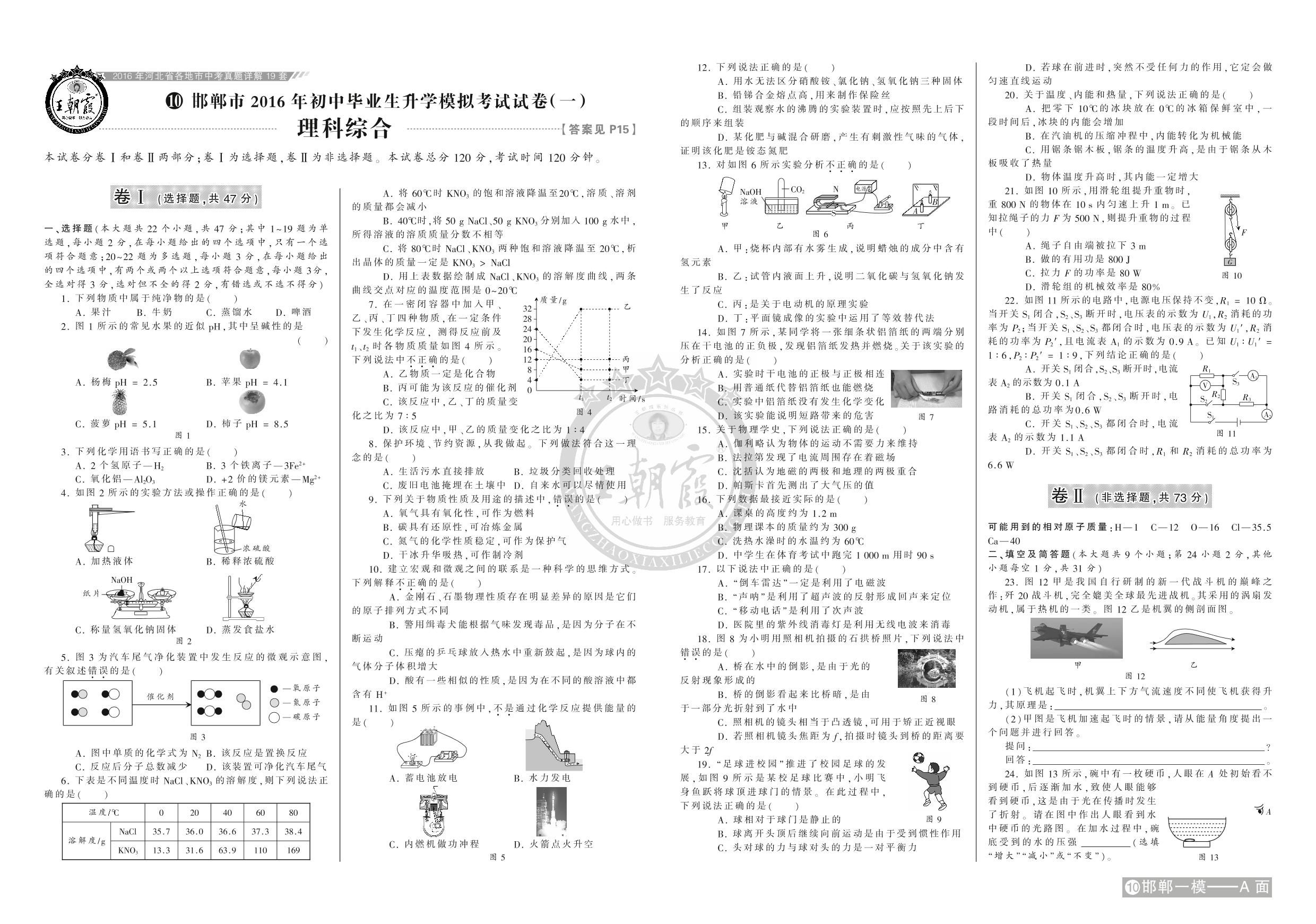 邯郸市2016年初中毕业生升学模拟考试试卷(一)【10】