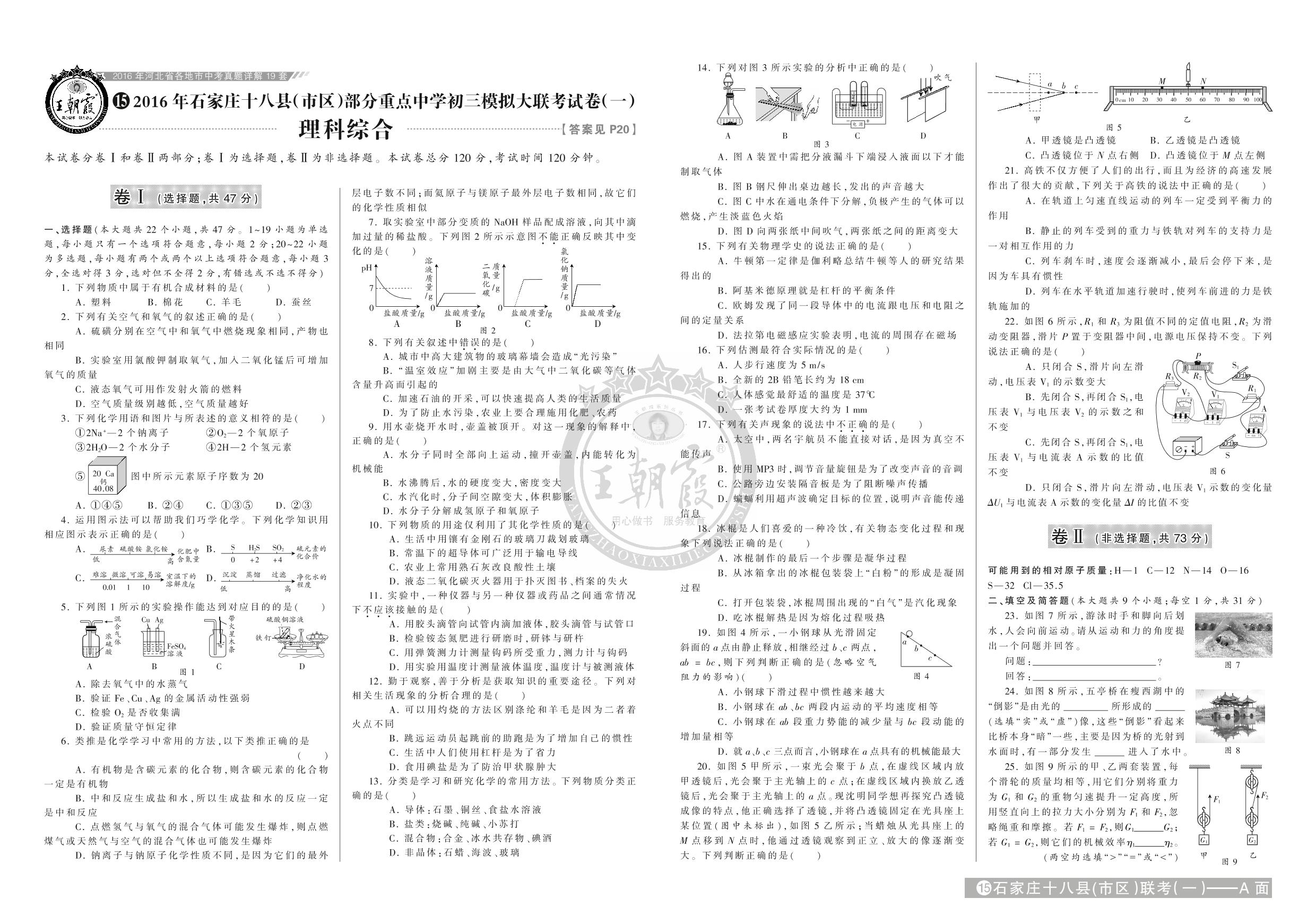 石家庄十八县(市区)部分重点中学初三模拟大联考试卷(一)【15】