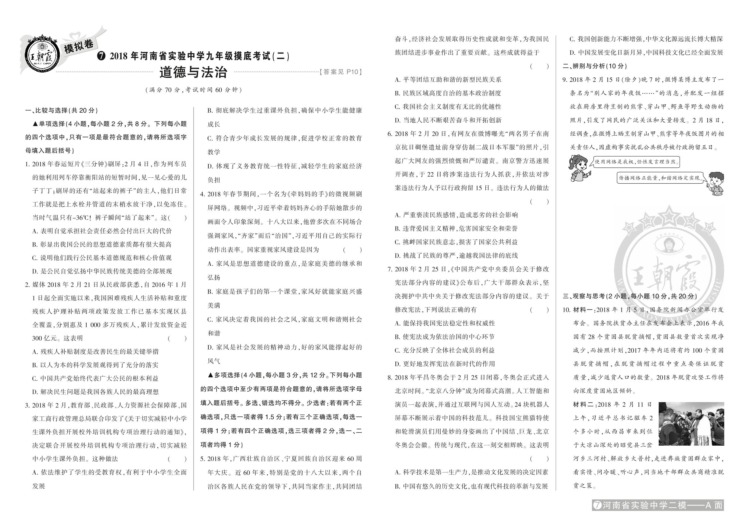 2018年河南省实验中学九年级摸底考试(二)【7】