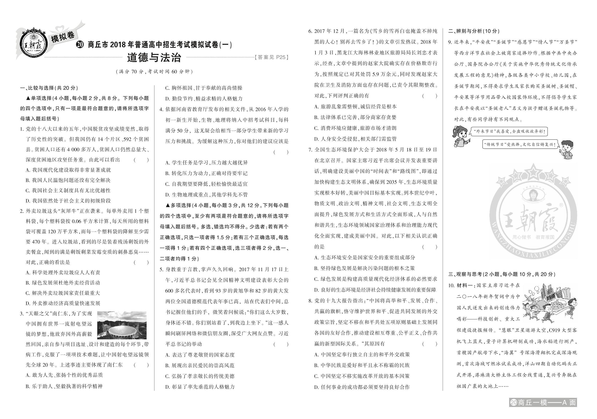 商丘市2018年普通高中招生考试模拟试卷(一)【20】
