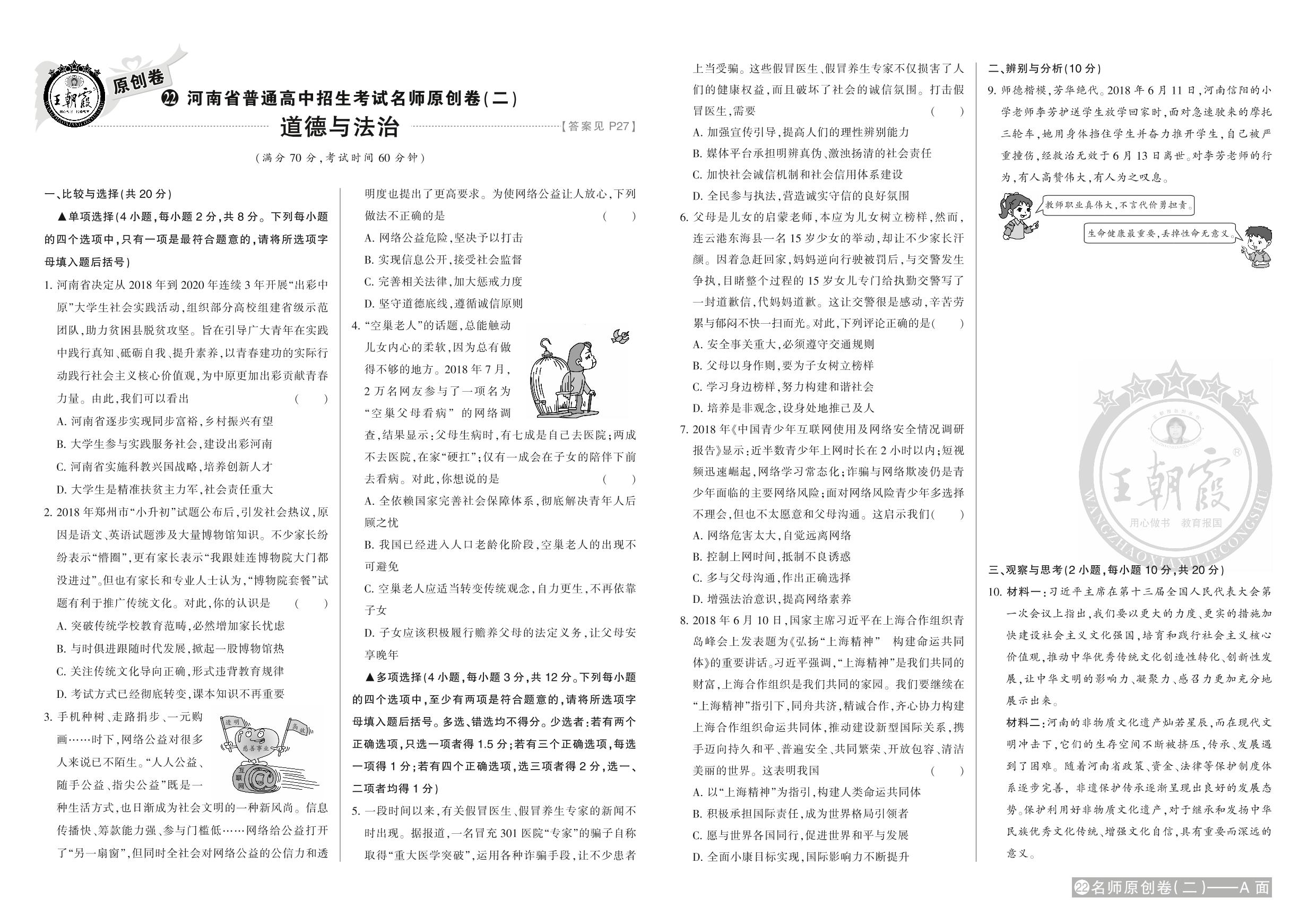 九年级道德与法治全国通用中考卷