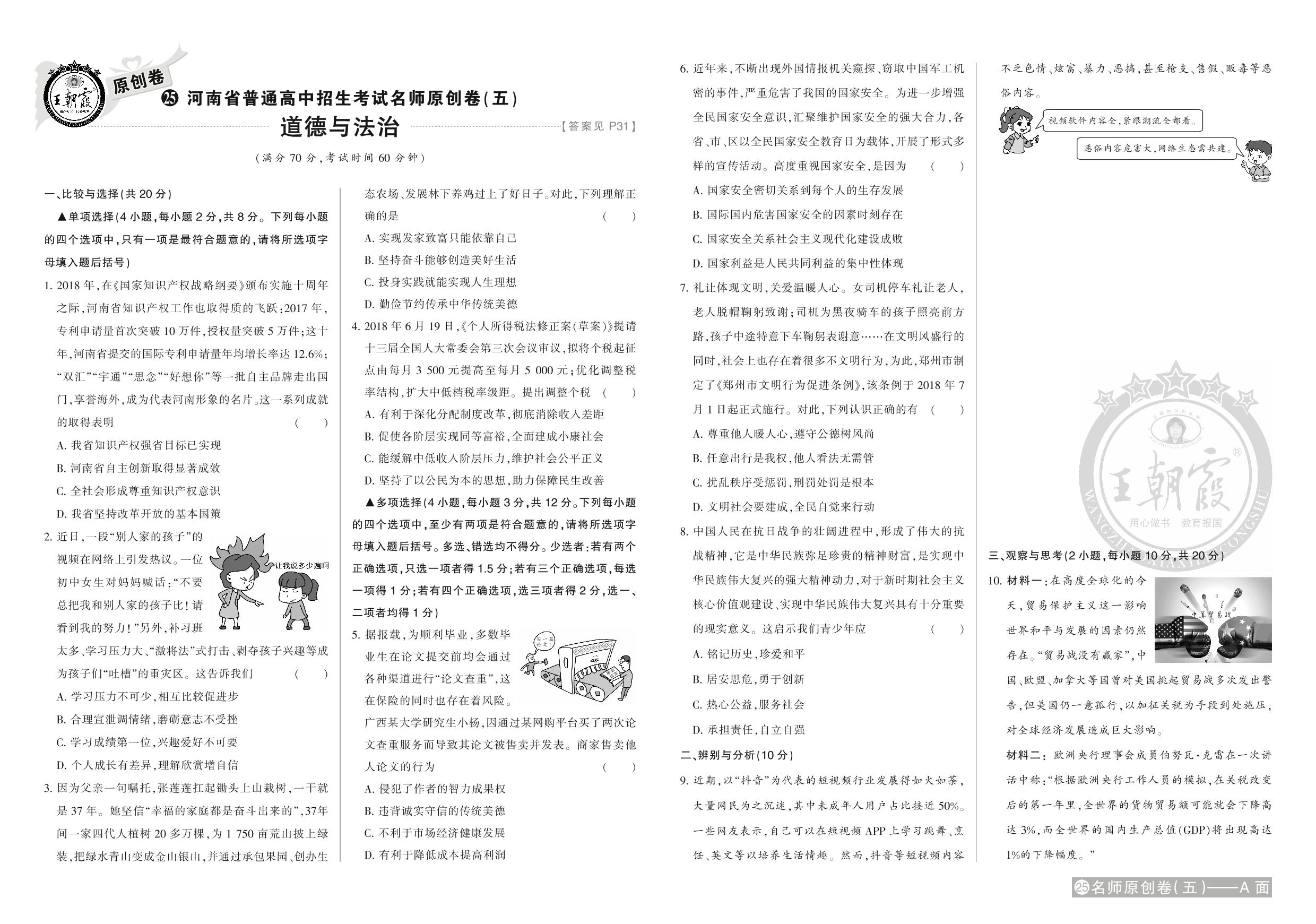 九年级道德与法治全国通用中考卷