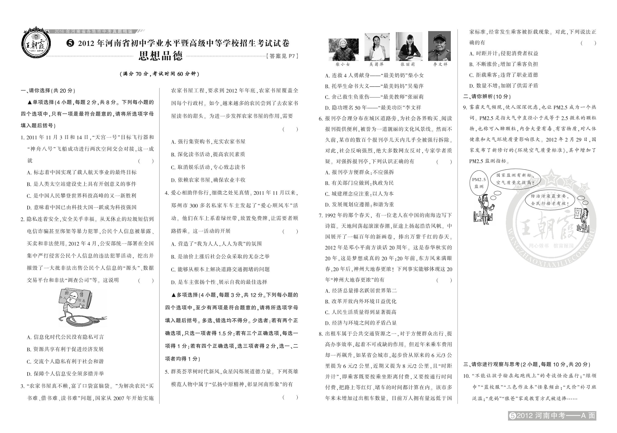 2012年河南省初中学业水平暨高级中等学校招生考试试卷【5】