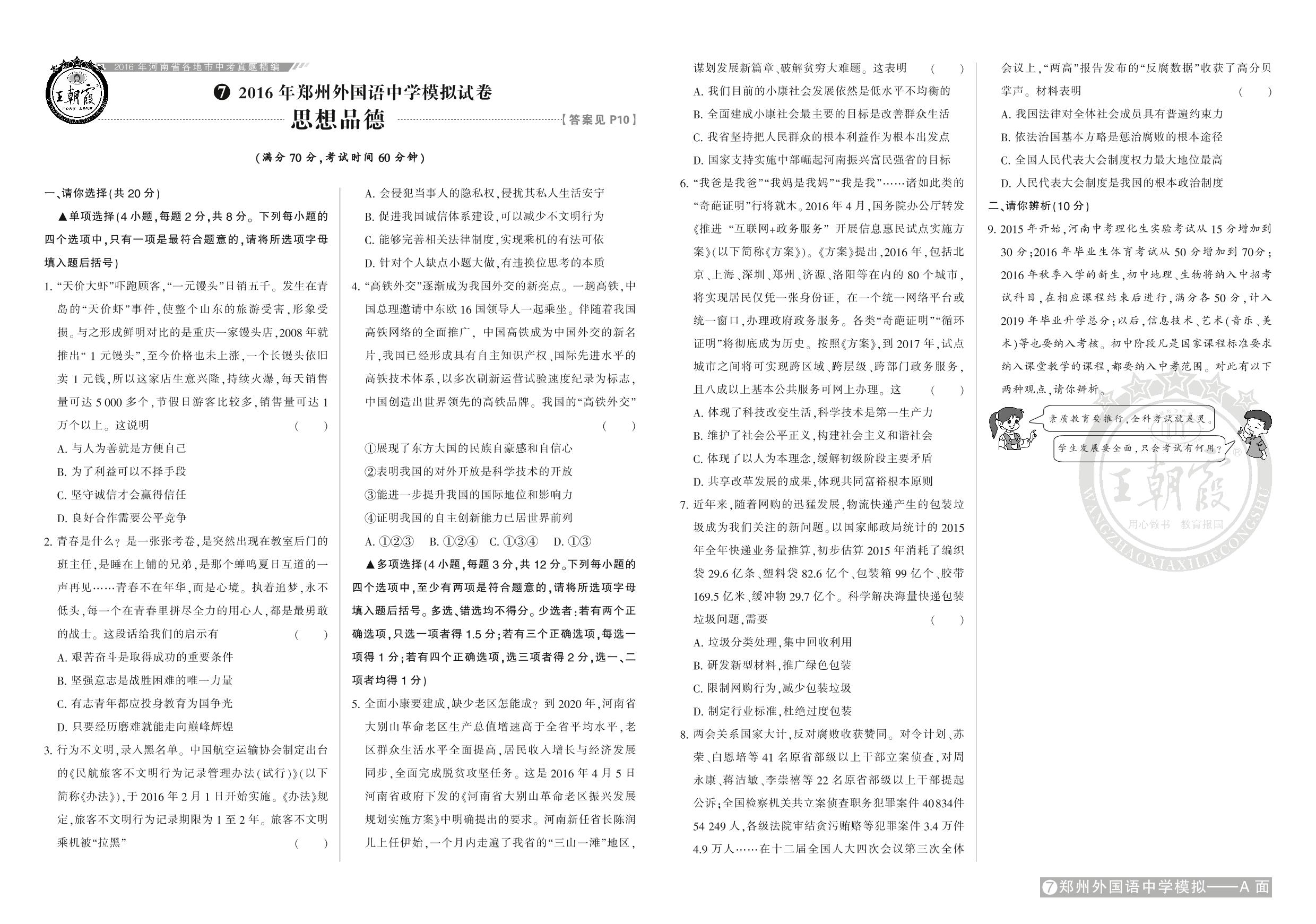 2016年郑州外国语中学模拟试卷【7】
