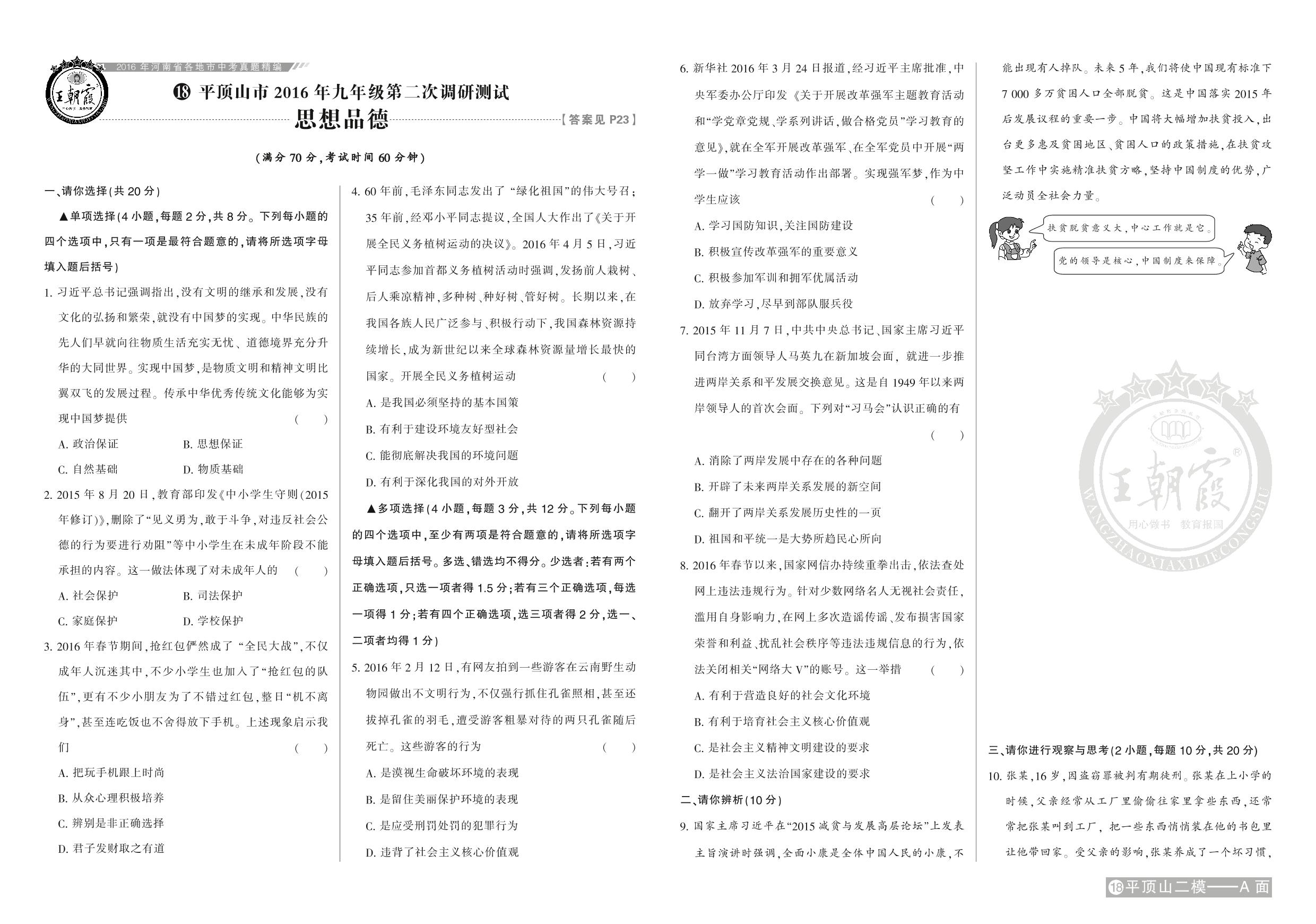 平顶山市2016年九年级第二次调研测试试卷【18】