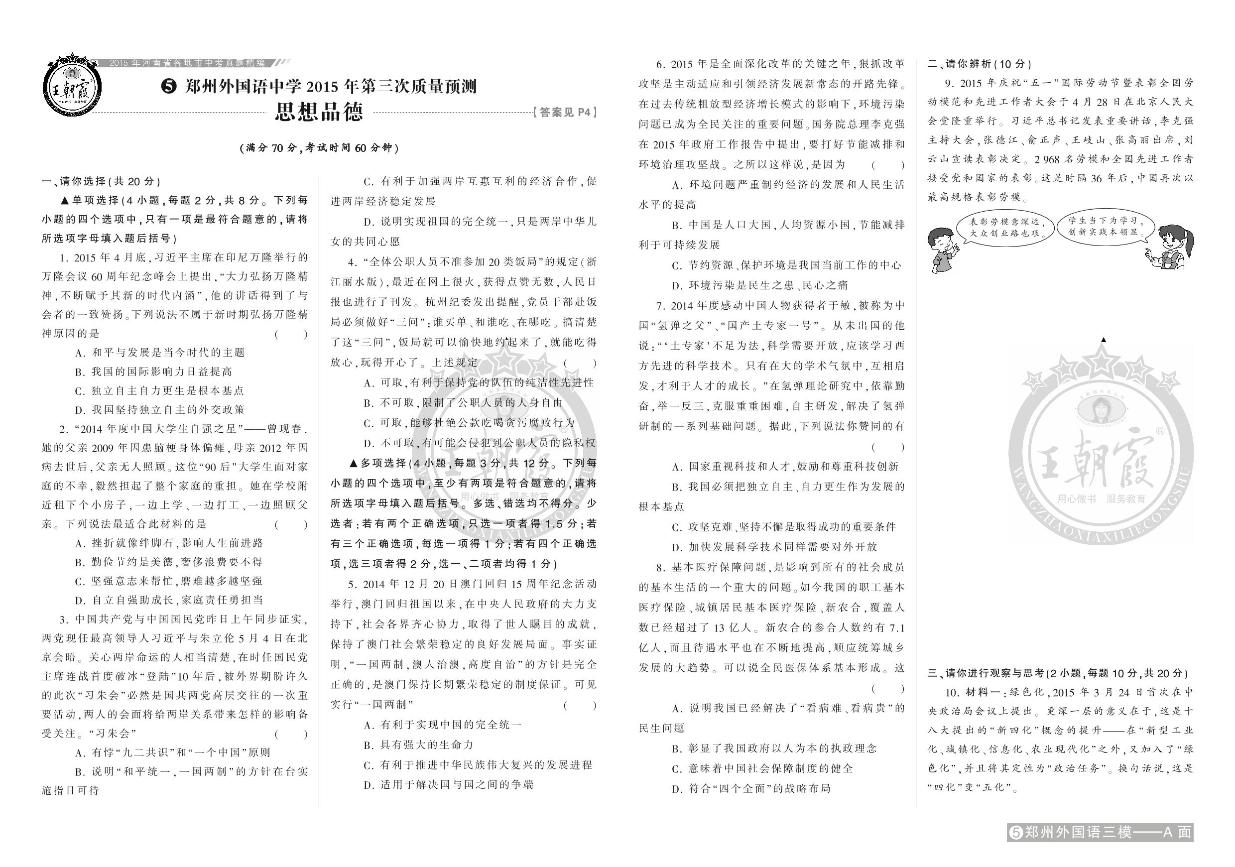 郑州外国语中学2015年第三次质量预测【5】