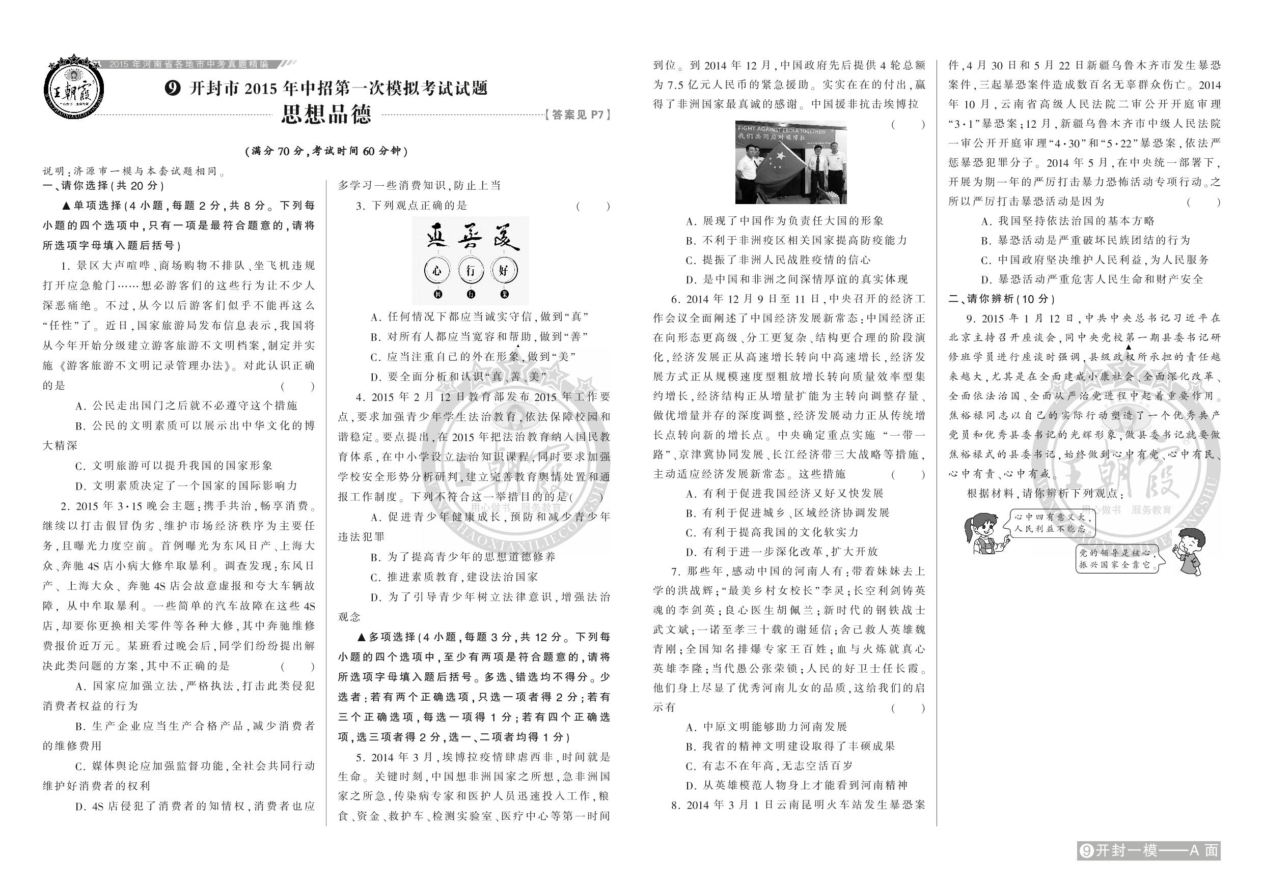 开封市2015年中招第一次模拟考试试题【9】