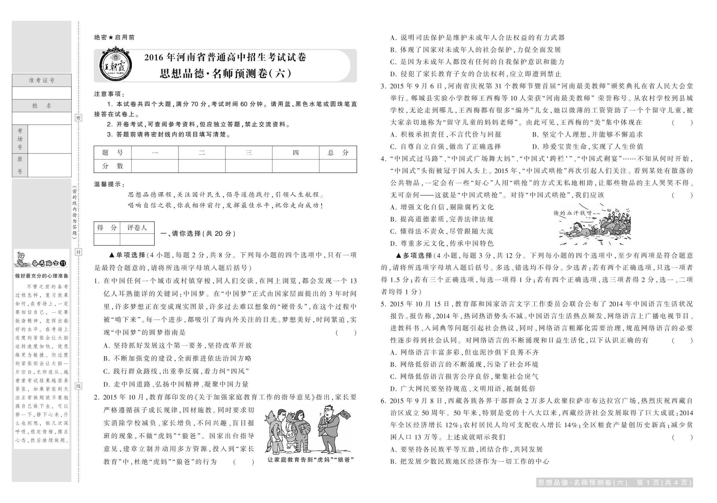 2016河南中考预测卷(六)