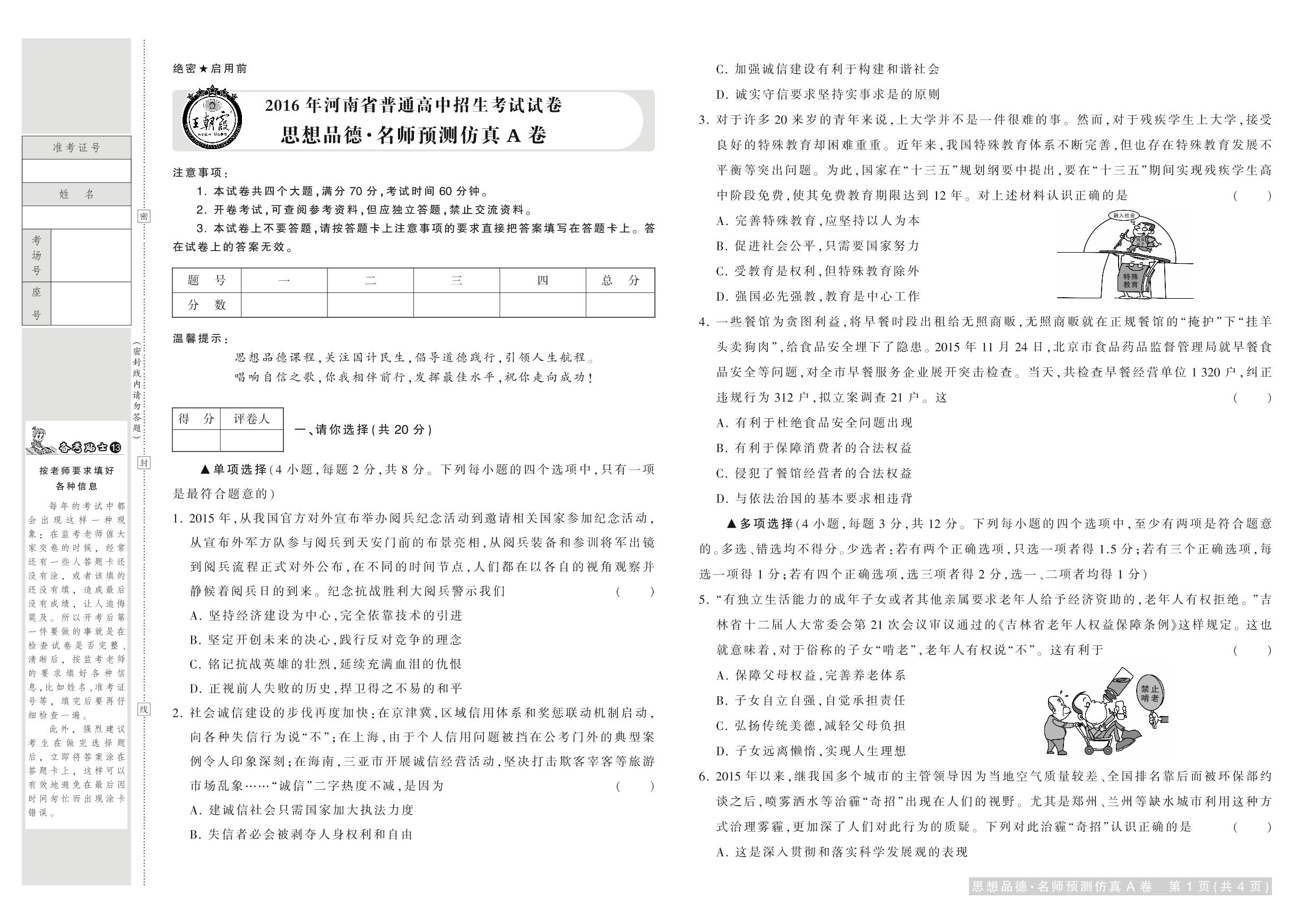 2016河南中考预测仿真A卷