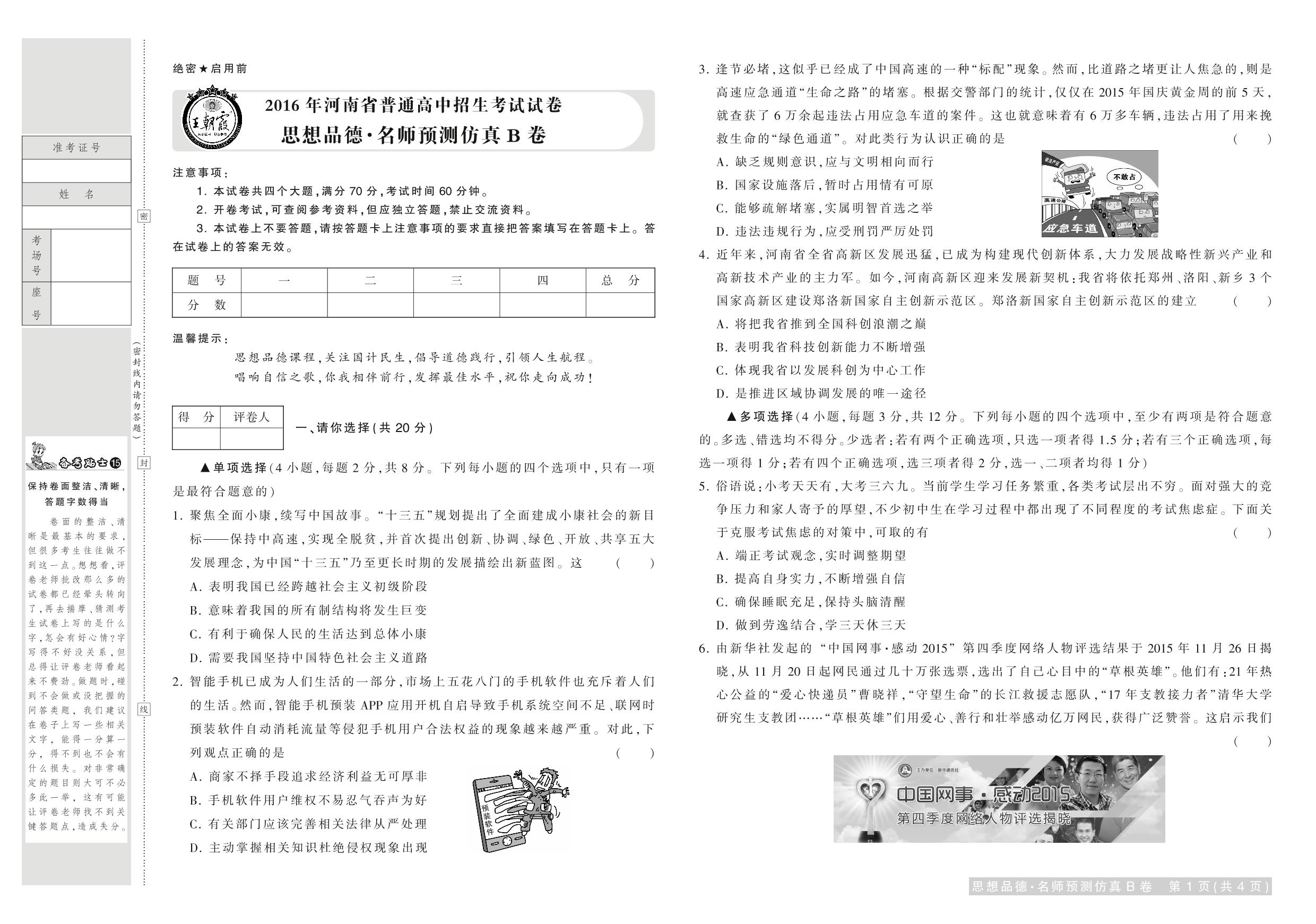 九年级道德与法治全国通用中考卷