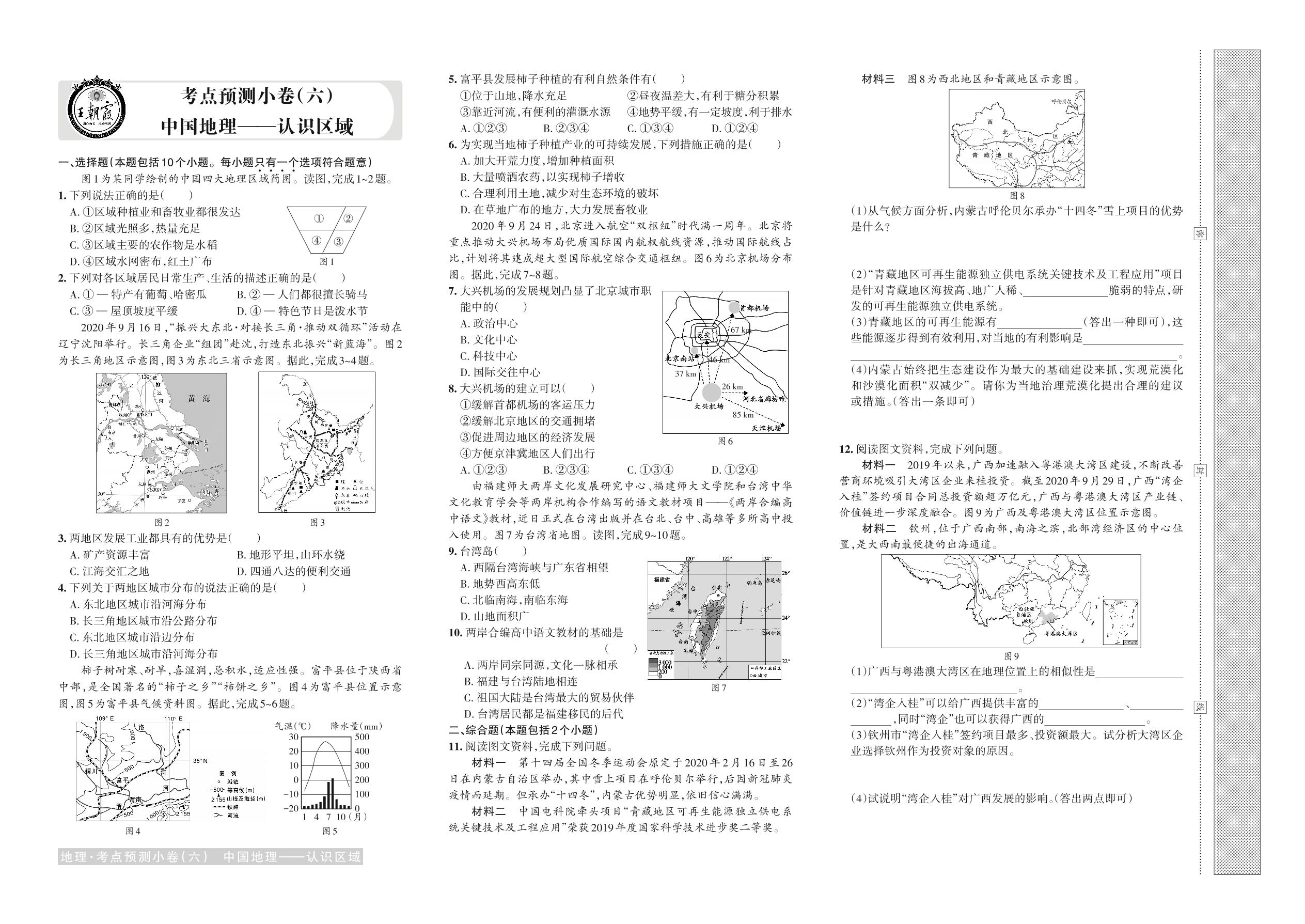 2021年河南中考地理考点预测小卷(六)中国地理——认识区域