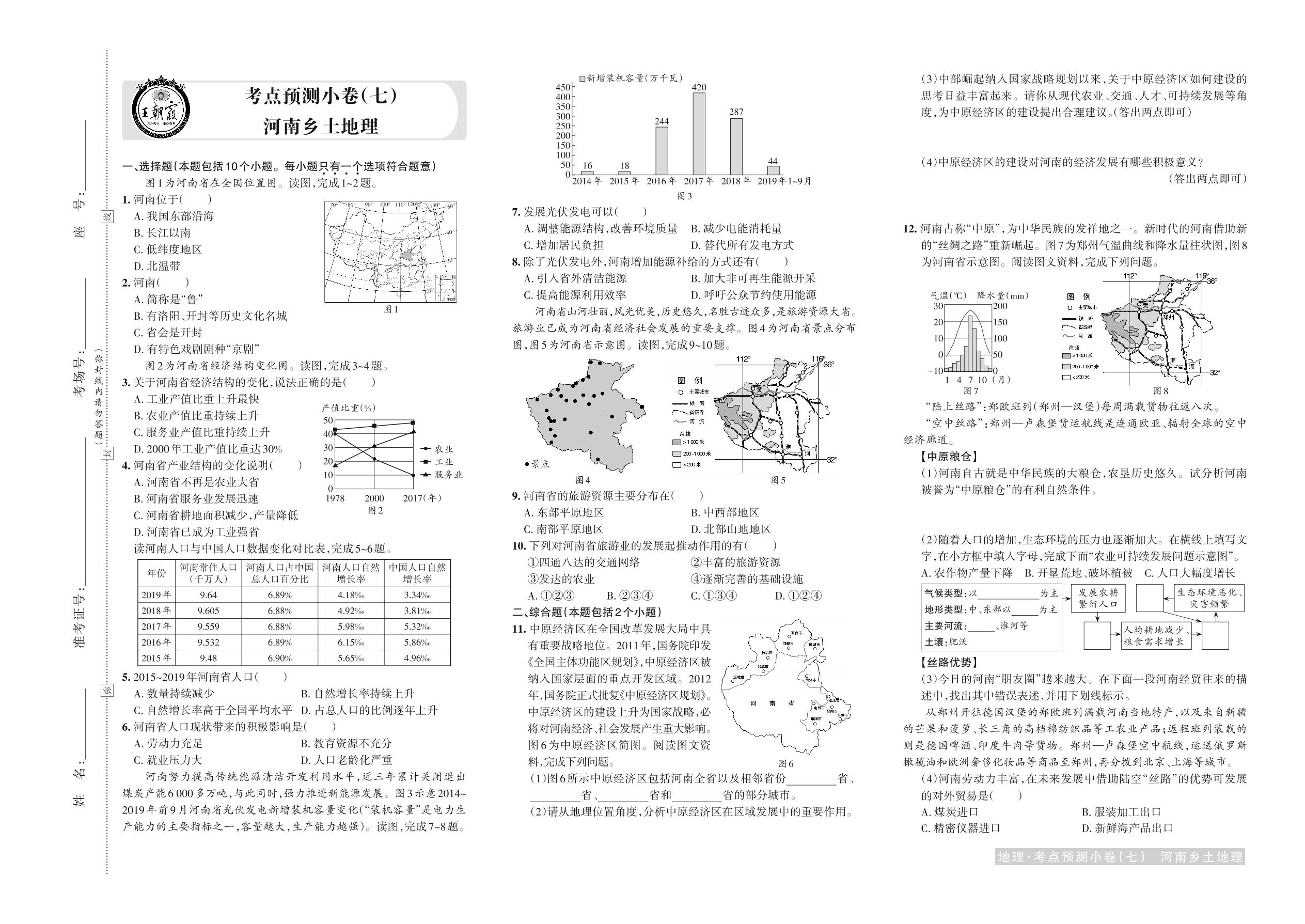 2021年河南中考地理考点预测小卷(七)河南乡土地理