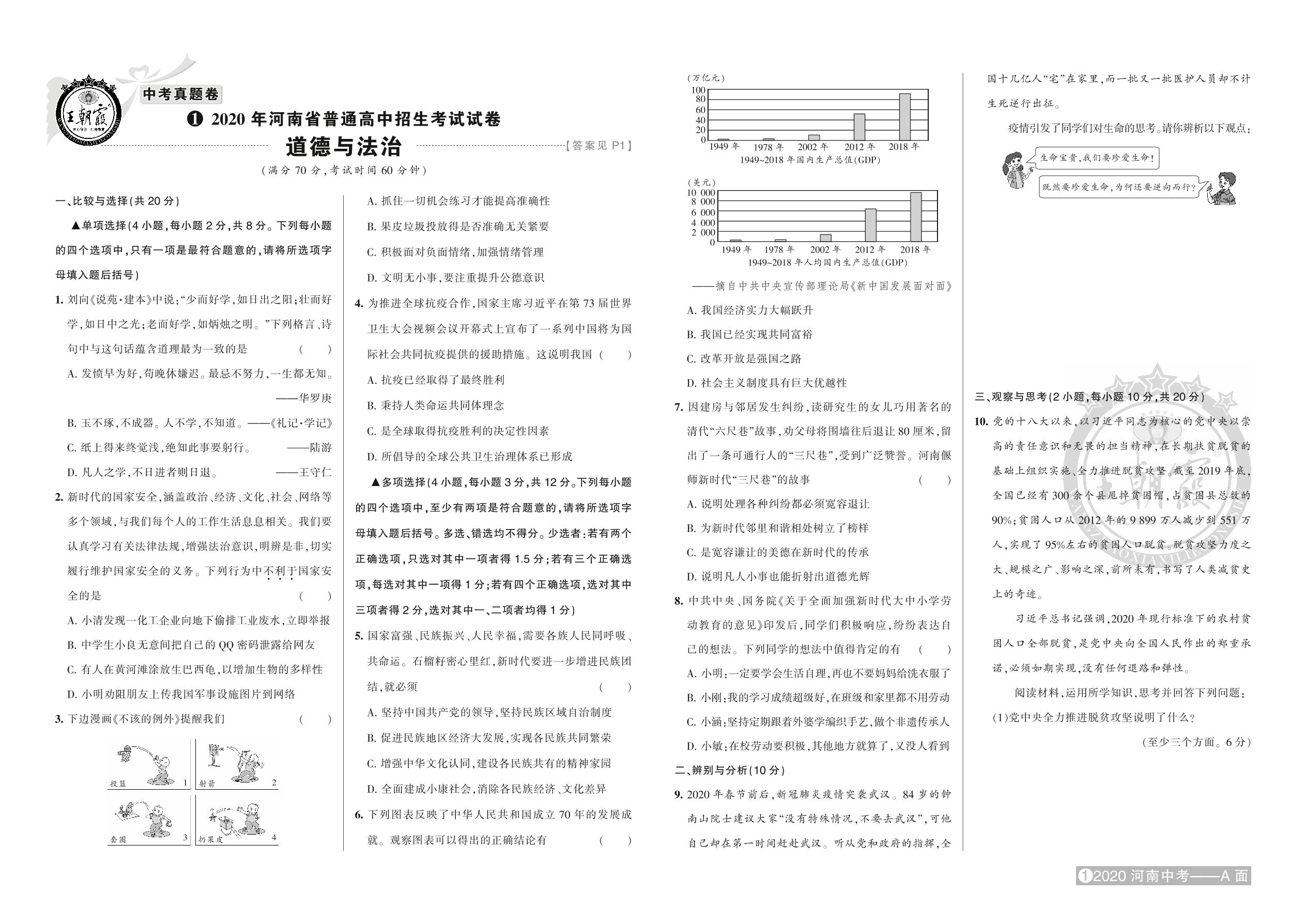 2020年河南省普通高中招生考试试卷道德与法治【1】