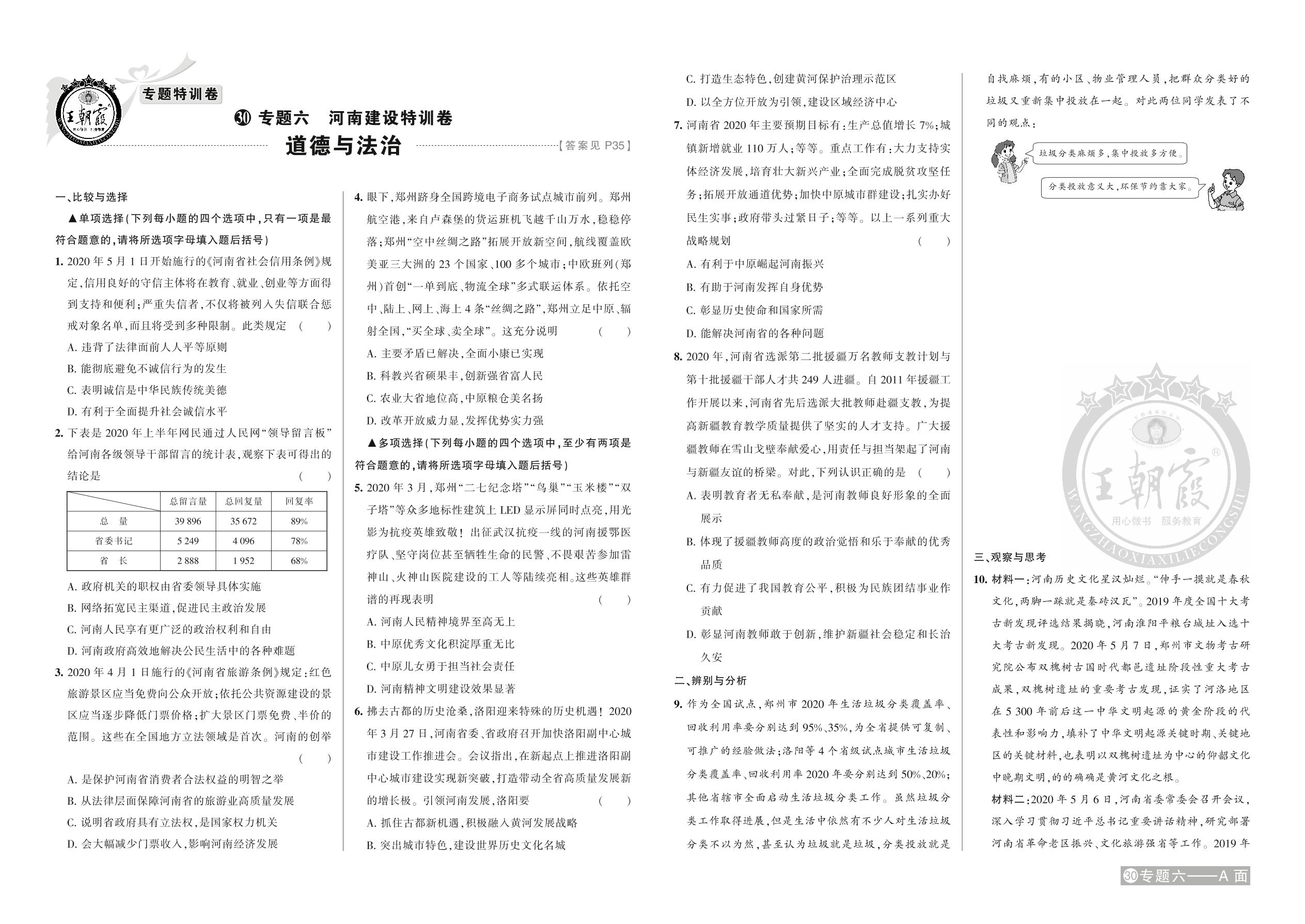 2021年河南中考道德与法治特训卷——专题六 河南建设特训卷【30】