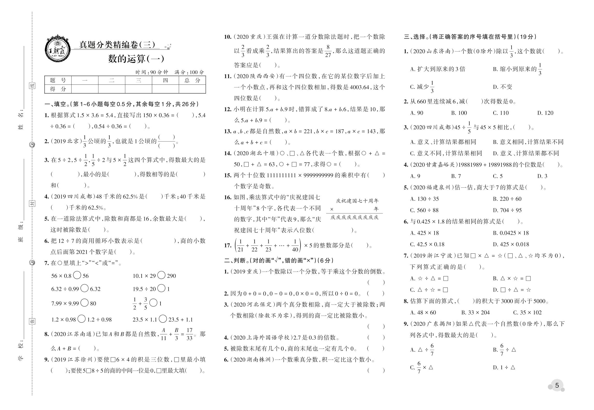 小升初数学真题分类·王朝霞精编卷——数的运算(一)【3】