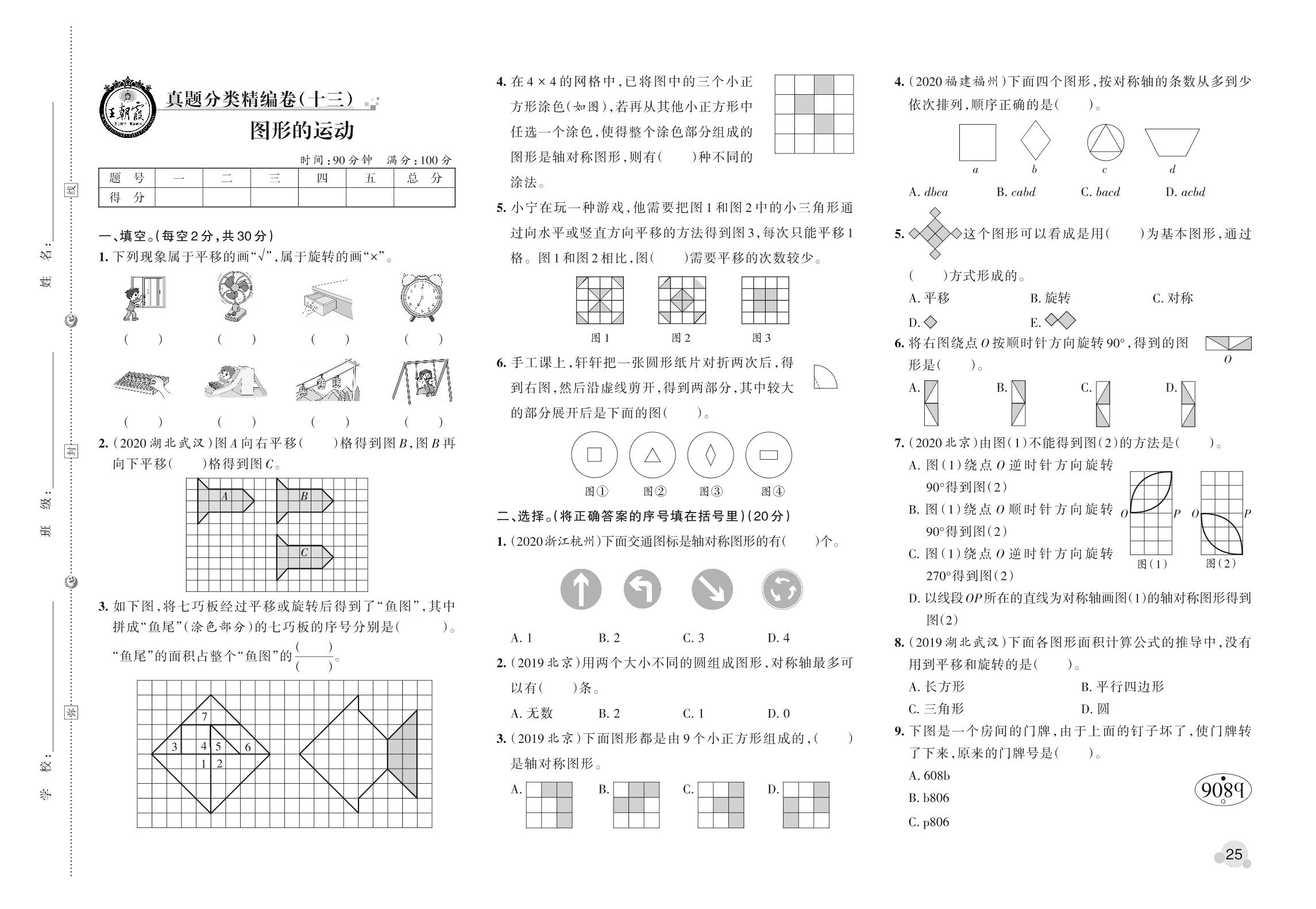 小升初数学真题分类·王朝霞精编卷——图形的运动【13】