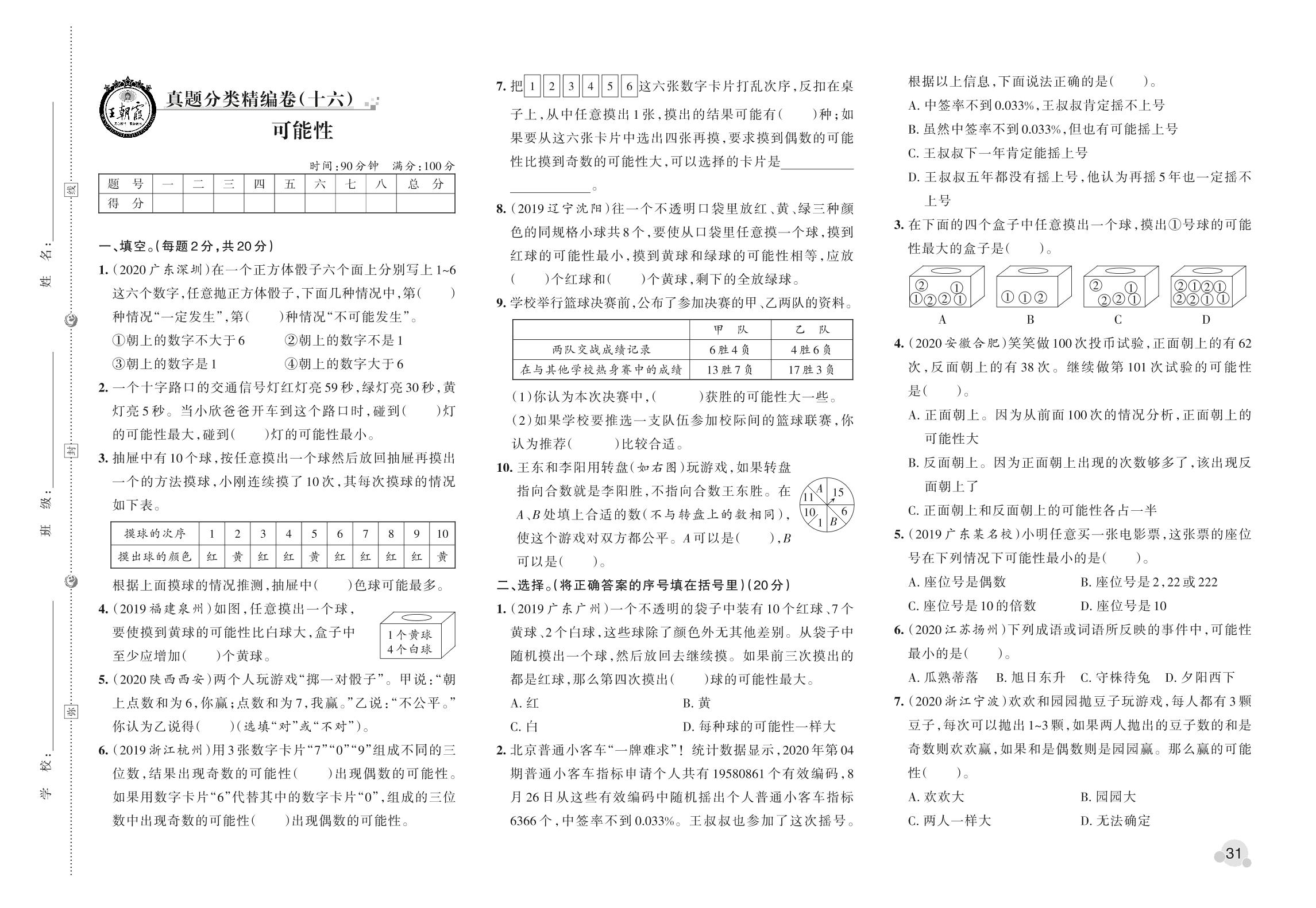 小升初数学真题分类·王朝霞精编卷——可能性_R211017083712757【16】