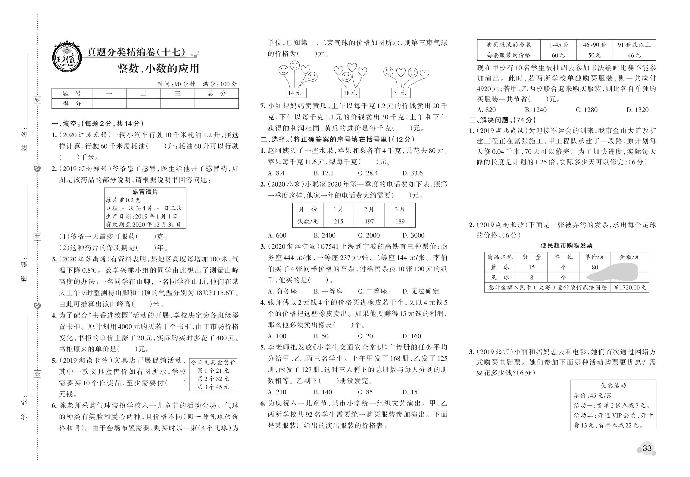 小升初数学真题分类·王朝霞精编卷——整数、小数的应用_R211017083712267【17】