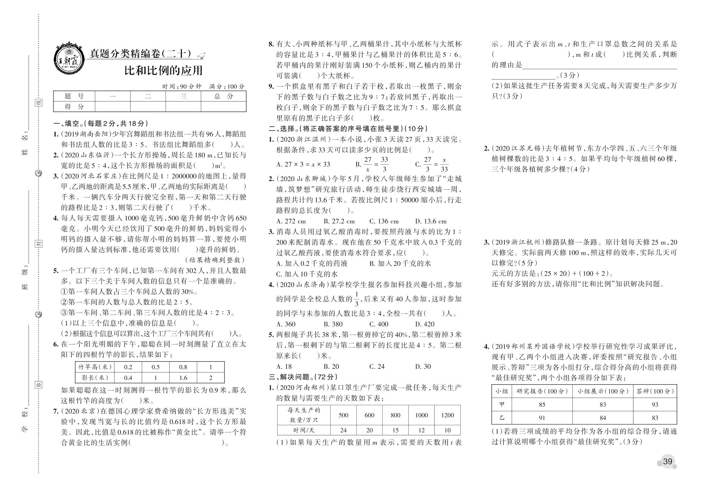 小升初数学真题分类·王朝霞精编卷——比和比例的应用【20】