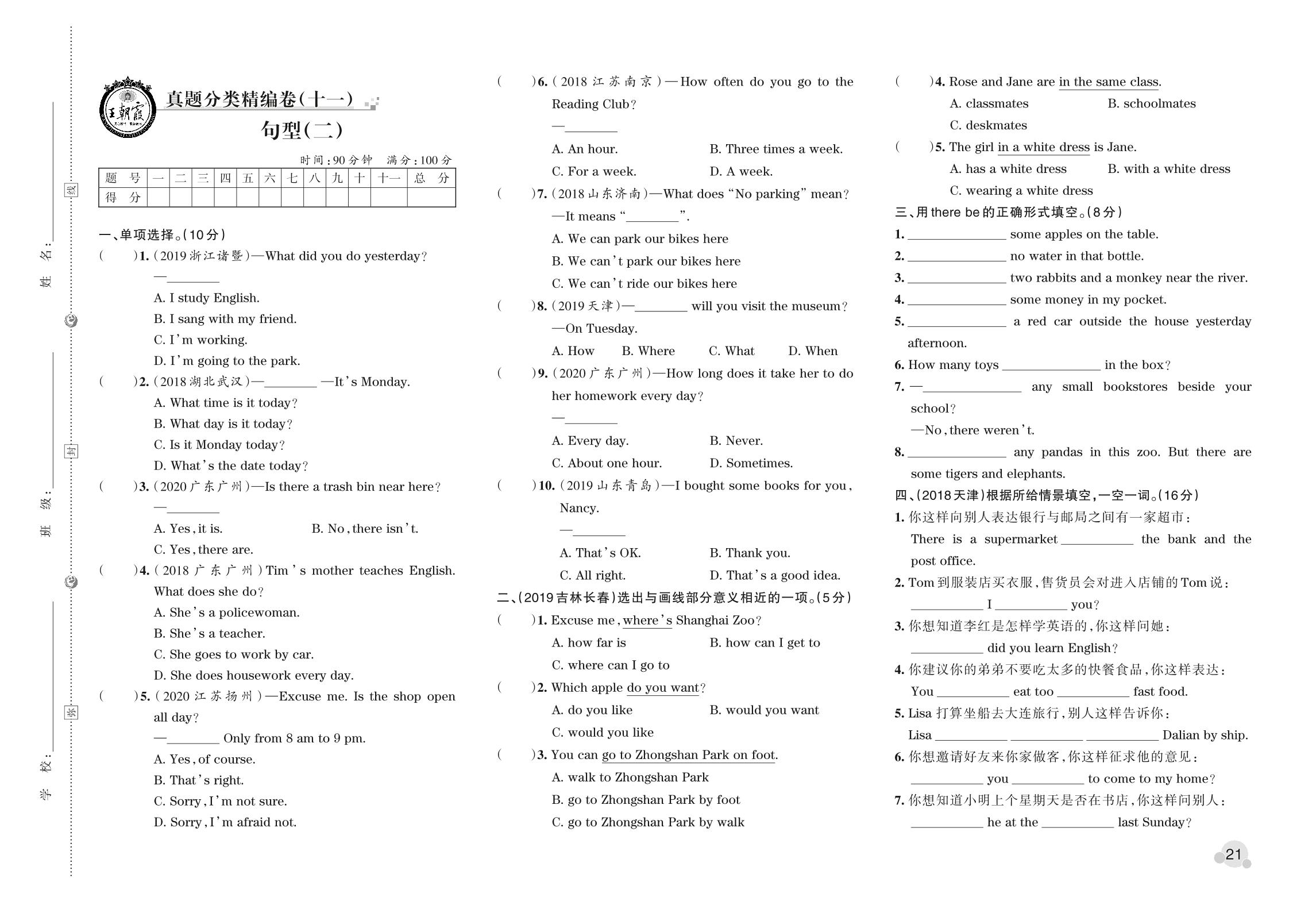 小升初英语真题分类·王朝霞精编卷——句型(二)_R211017083540030【11】