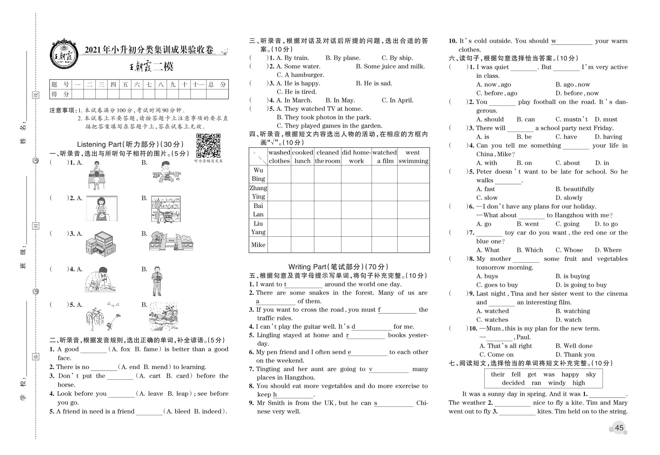 小升初英语分类集训成果验收卷·王朝霞模拟卷【23】