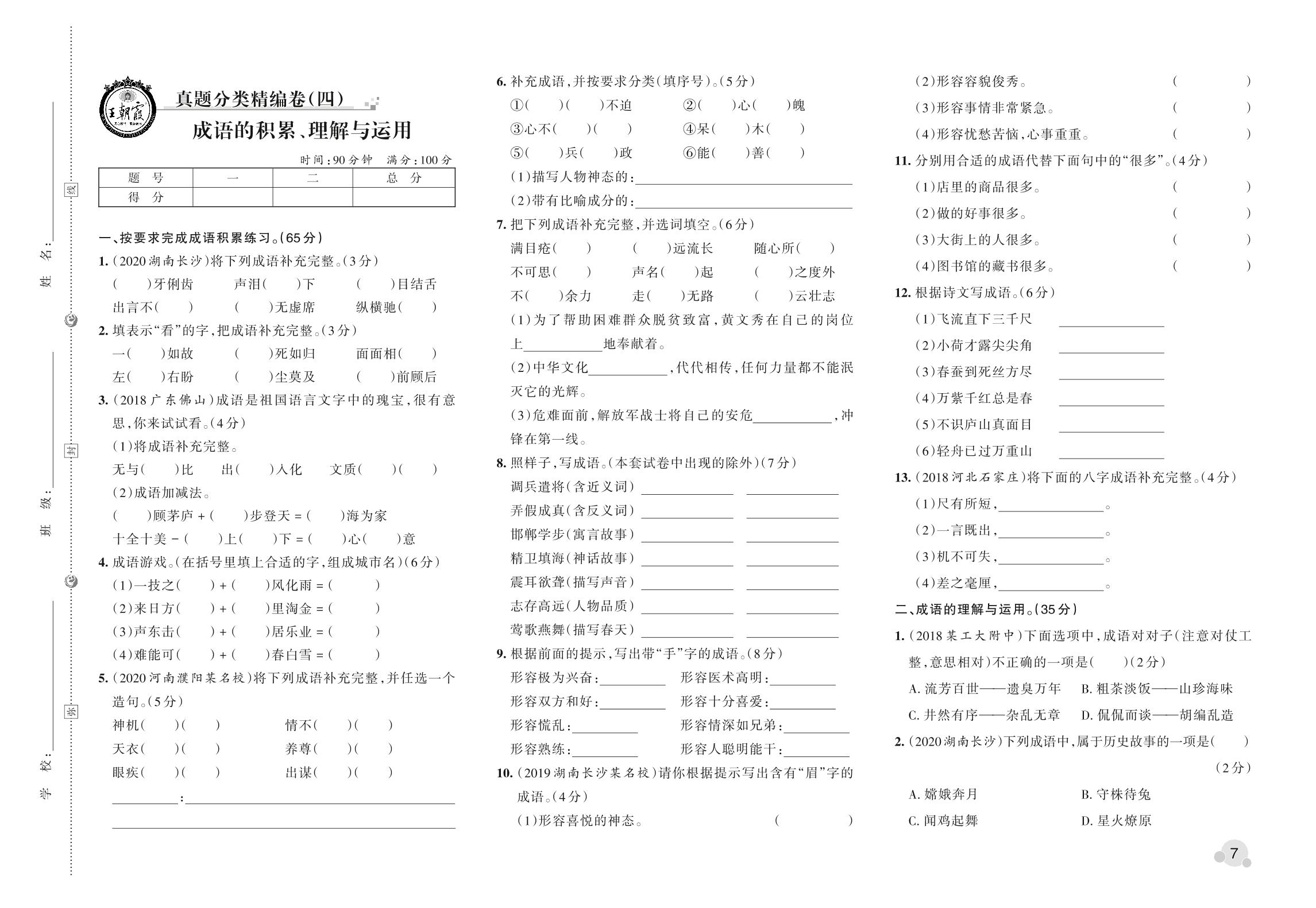 小升初语文真题分类·王朝霞精编卷——成语的积累、理解与运用【4】