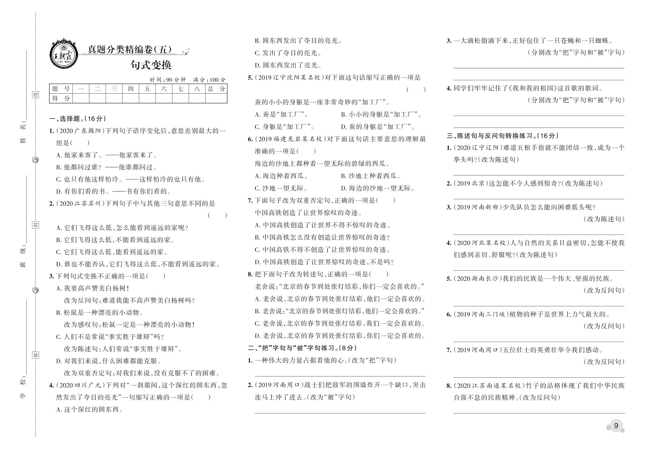 小升初语文真题分类·王朝霞精编卷——句式变换_R211017083541292【5】