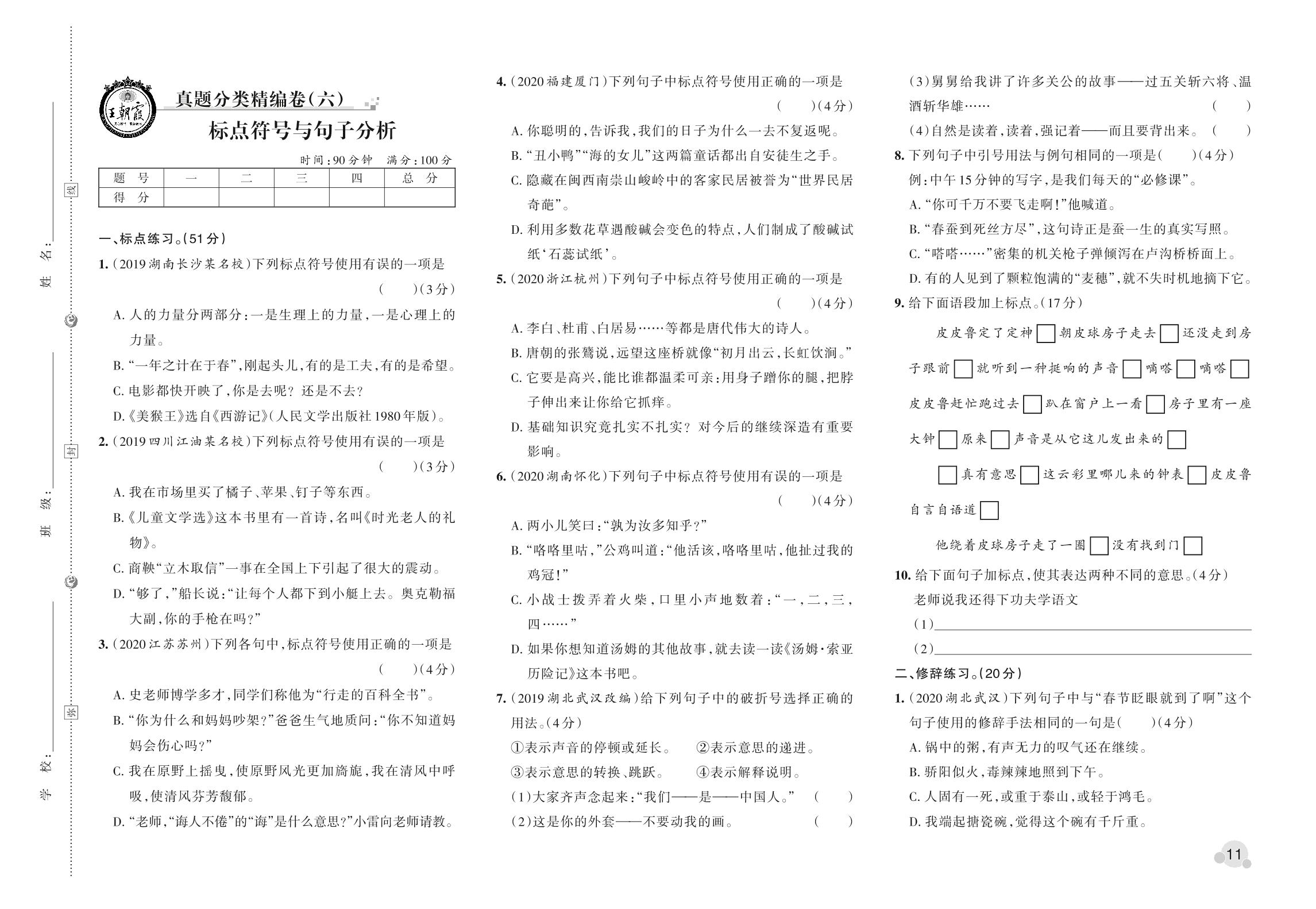 小升初语文真题分类·王朝霞精编卷——标点符号与句子分析_R211017083541413【6】