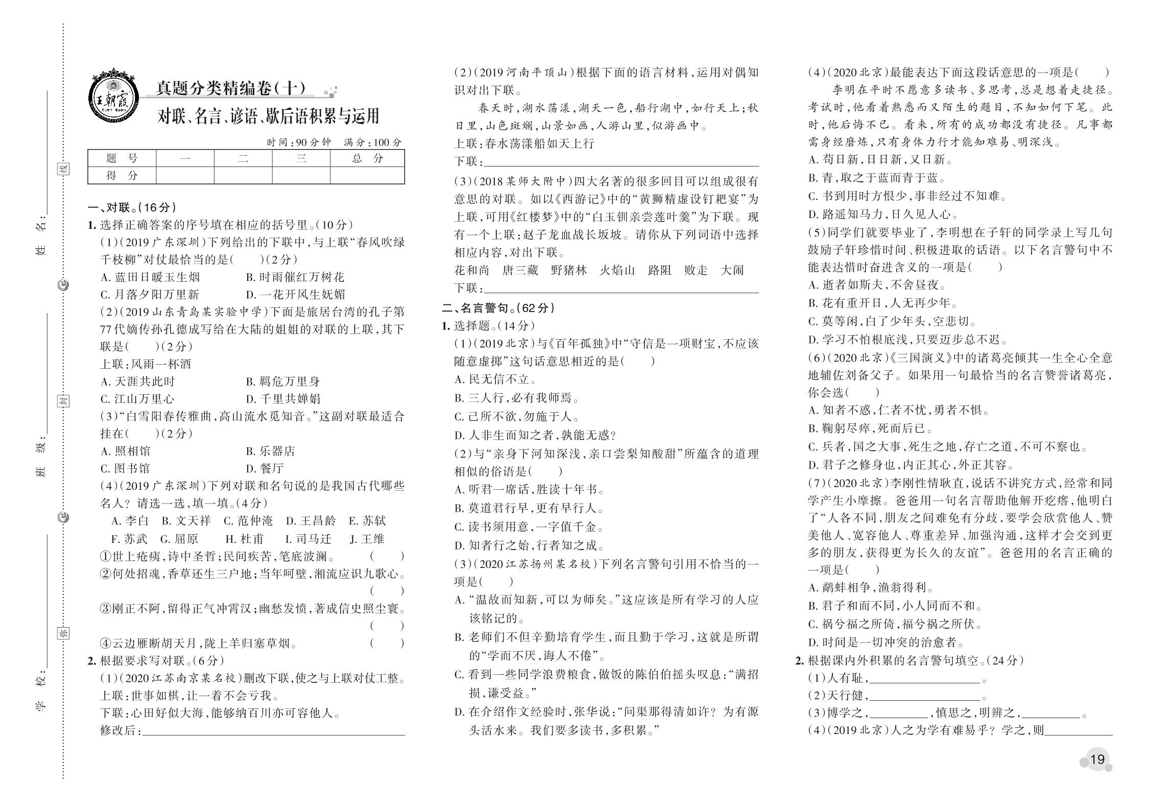 小升初语文真题分类·王朝霞精编卷——对联、名言、谚语、歇后语积累与运用_R211017083542856【10】