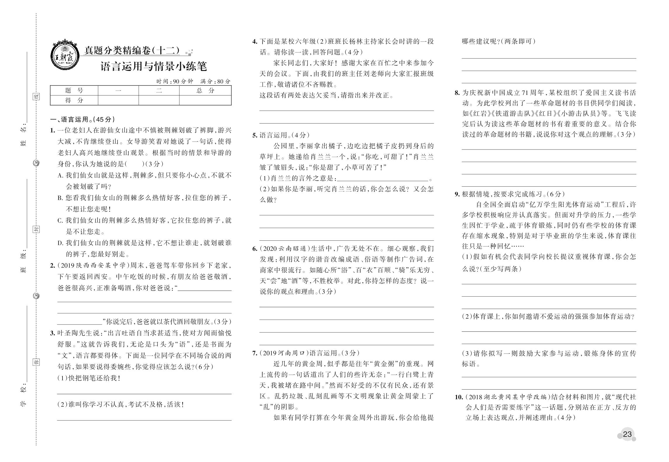 小升初语文真题分类·王朝霞精编卷——语言运用与情景小练笔_R211017083542205【12】