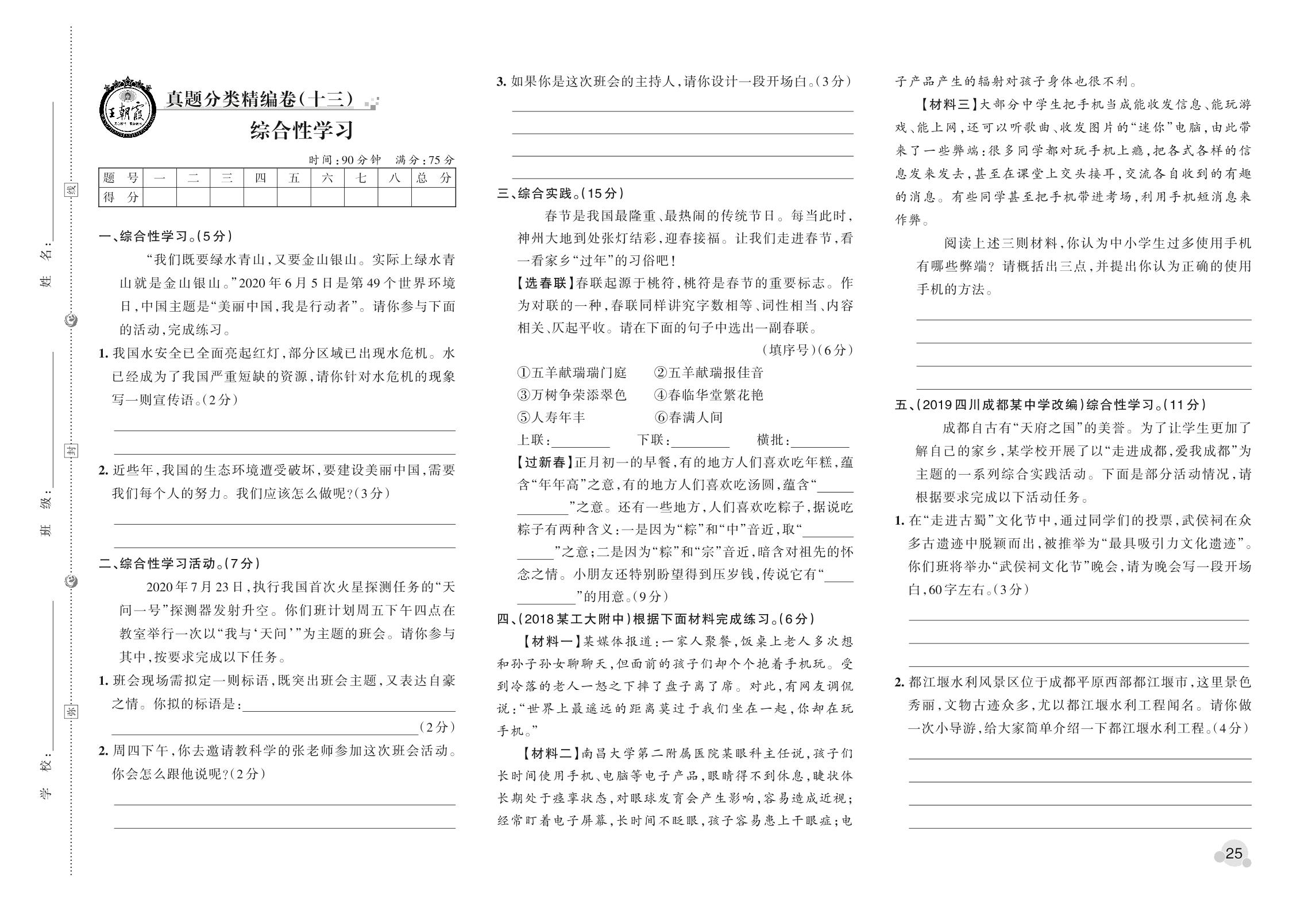 小升初语文真题分类·王朝霞精编卷——综合性学习_R211017083542353【13】