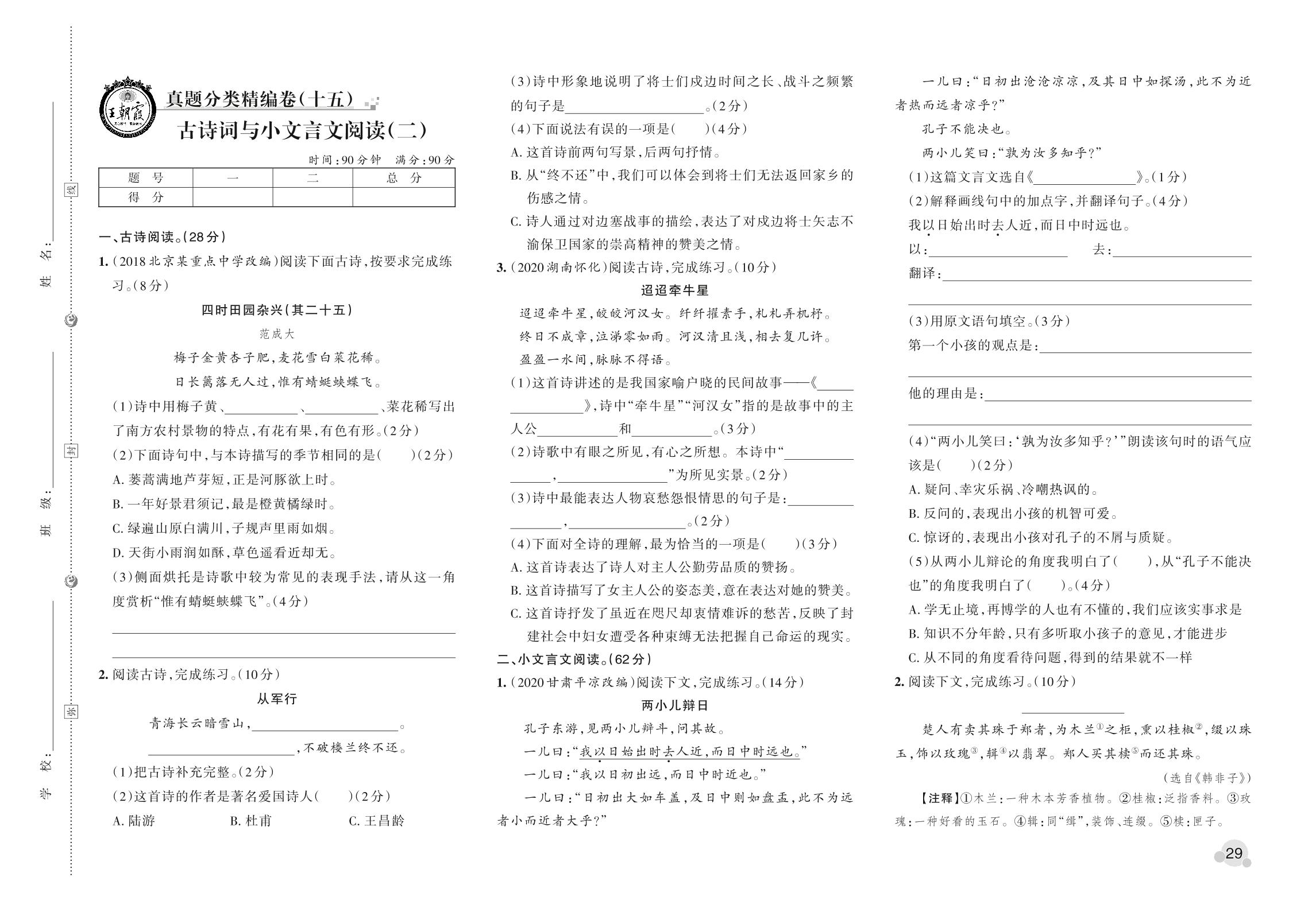 小升初语文真题分类·王朝霞精编卷——古诗词与小文言文阅读(二)_R211017083542991【15】
