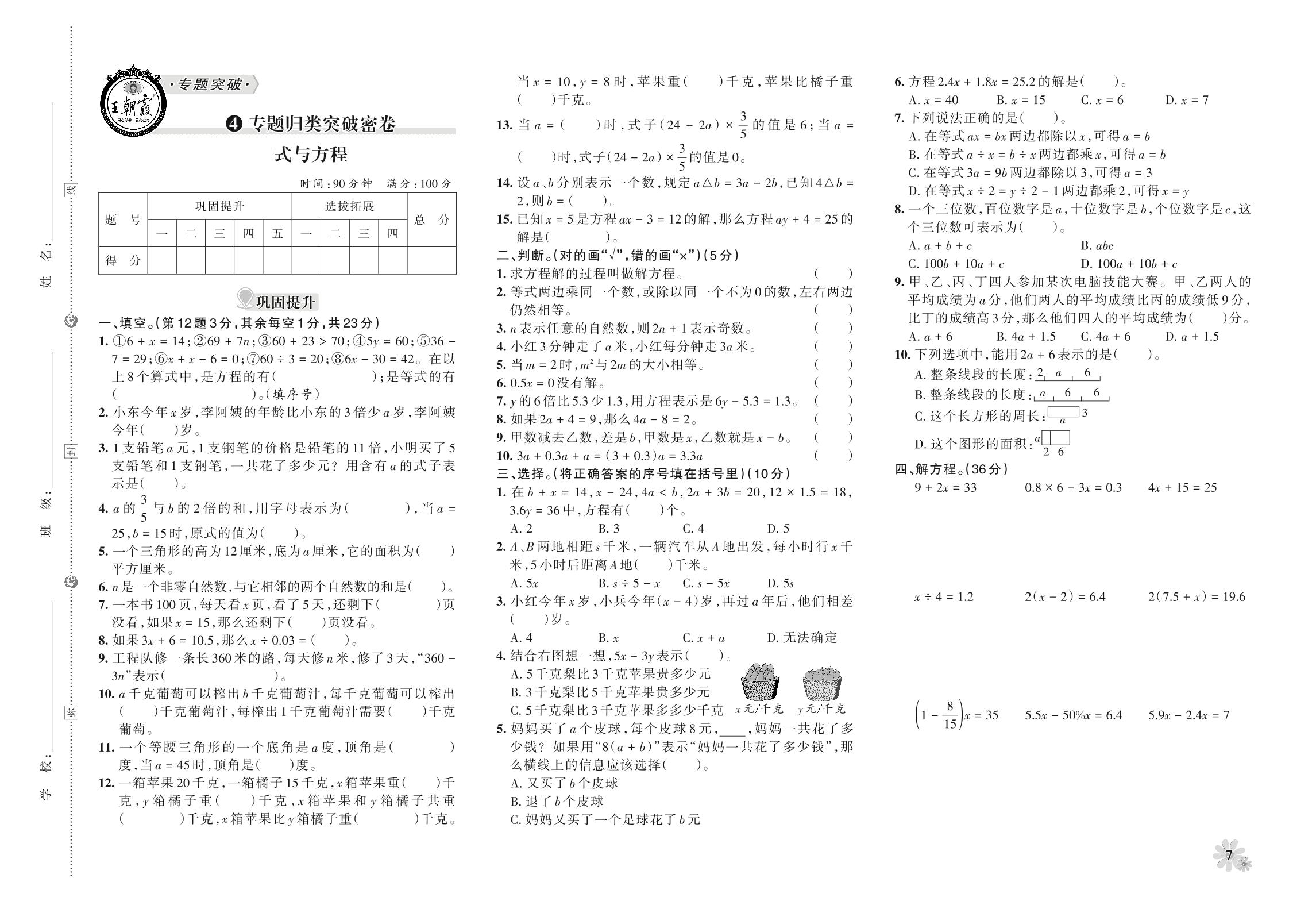 小升初数学·王朝霞专题归类突破密卷——式与方程_R211014165135233【4】