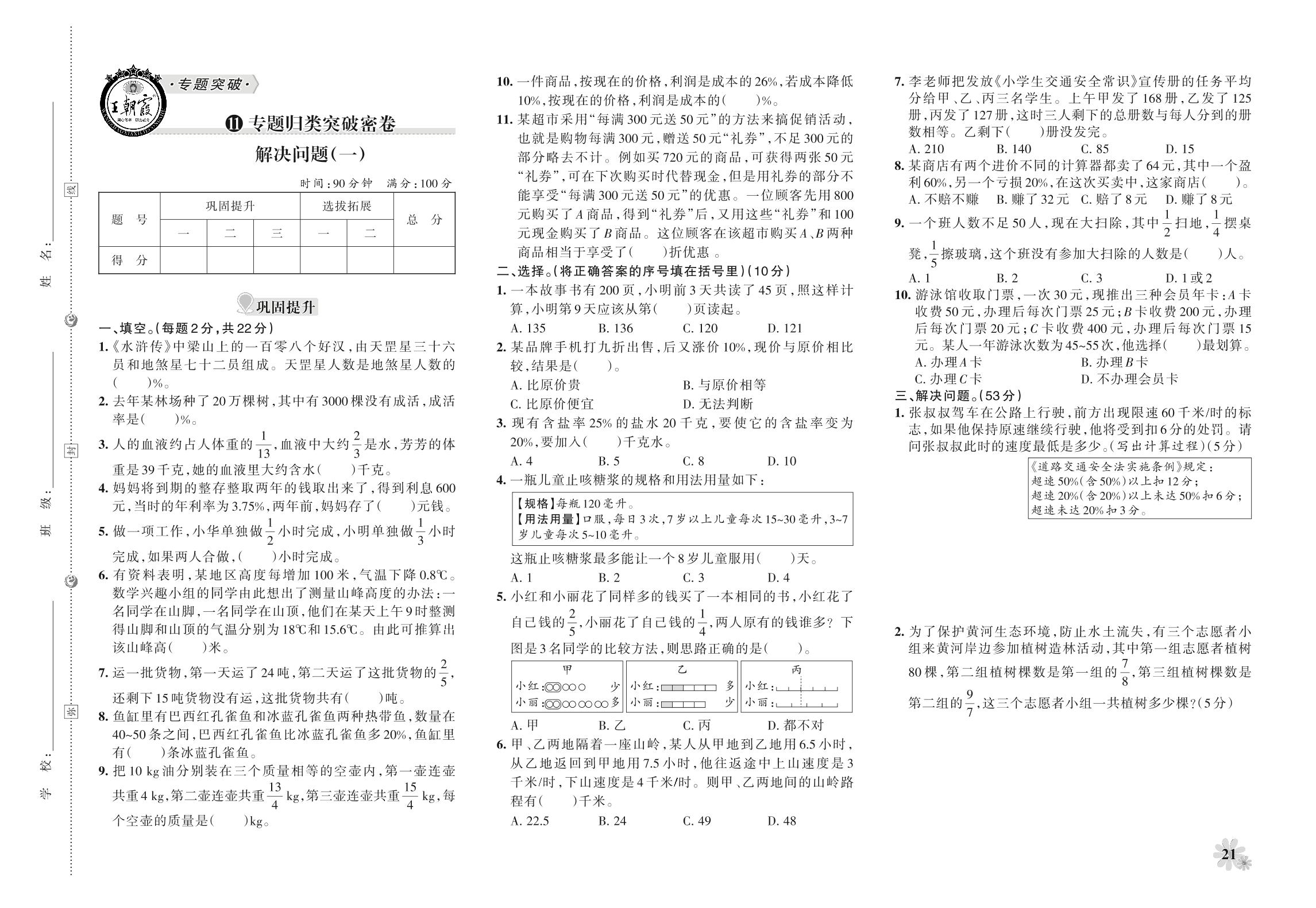 小升初数学·王朝霞专题归类突破密卷——解决问题(一)_R220115120425403【11】