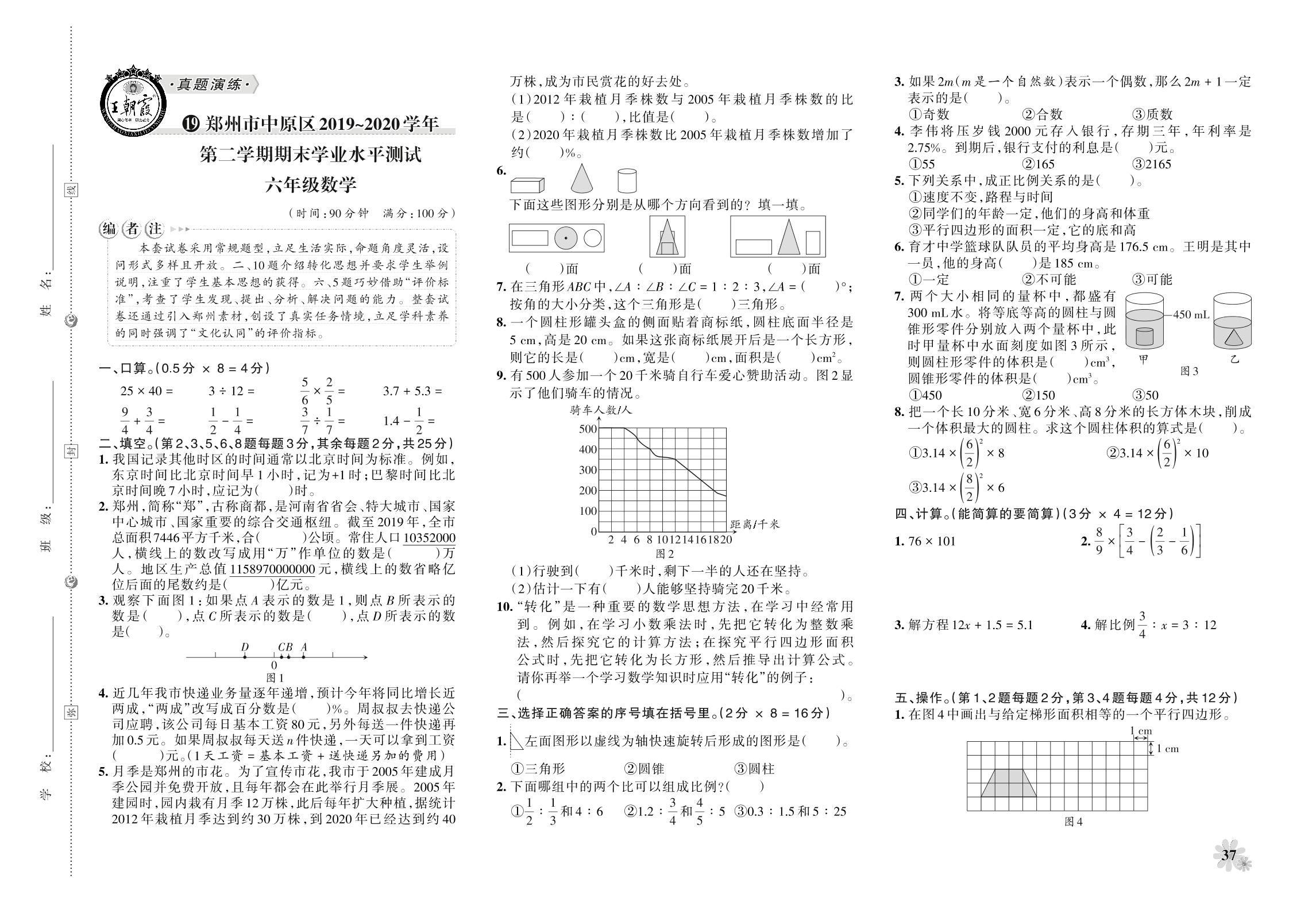 小升初数学郑州市中原区2019~2020学年第二学期期末学业水平测试【19】