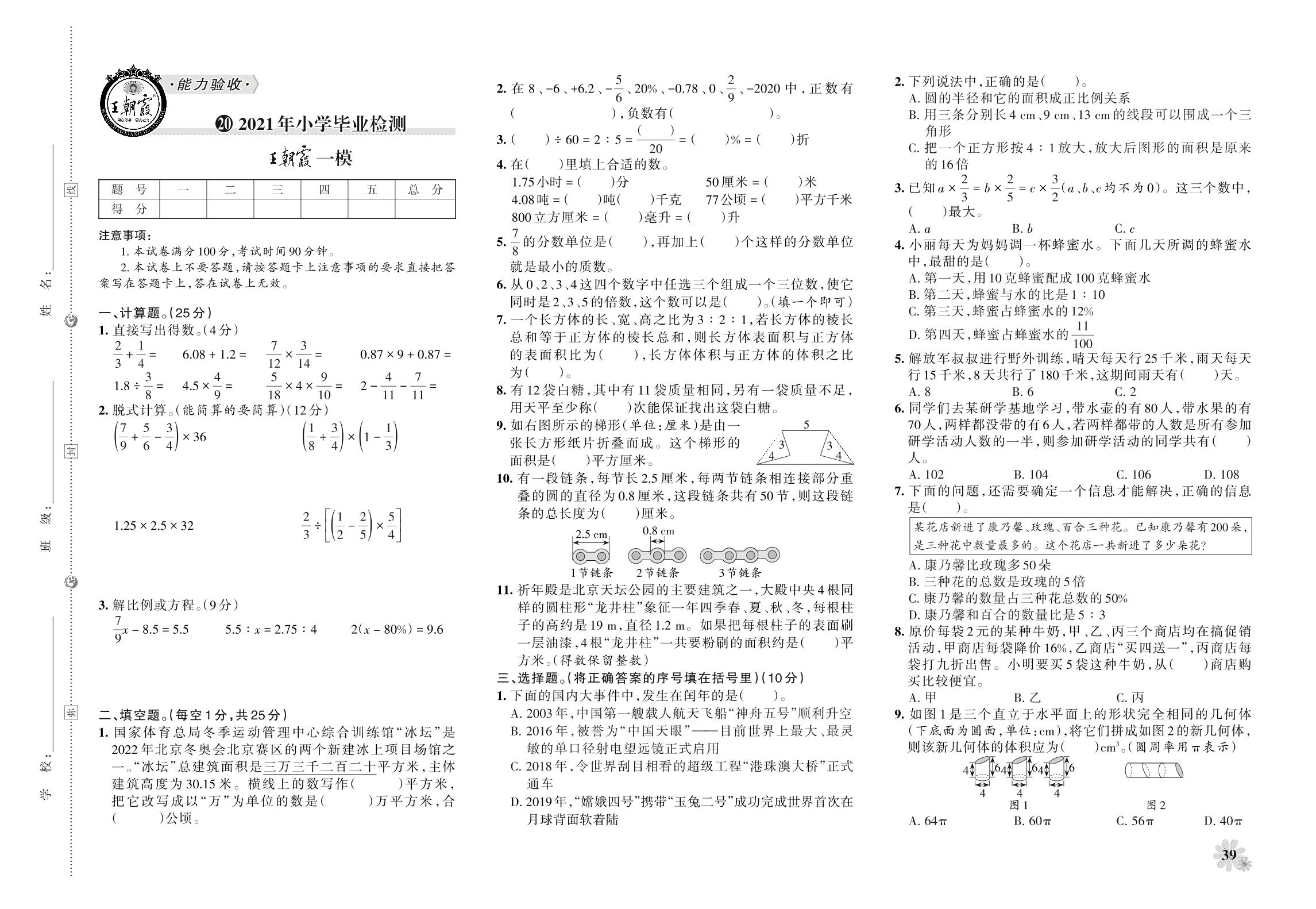 小升初数学小学毕业检测·王朝霞模拟卷_R211014165136683【20】