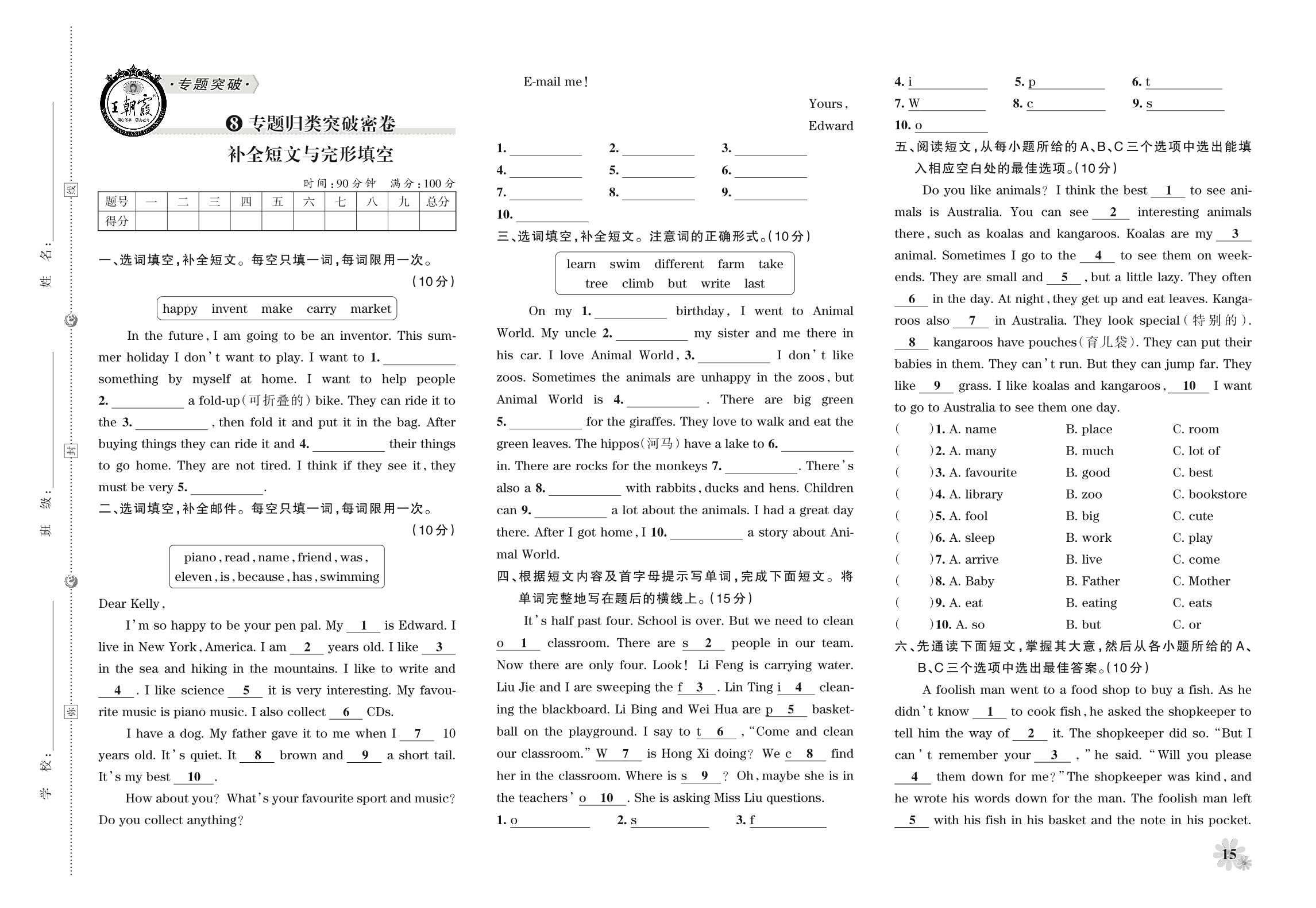 小升初英语·王朝霞专题归类突破密卷——补全短文与完形填空【8】