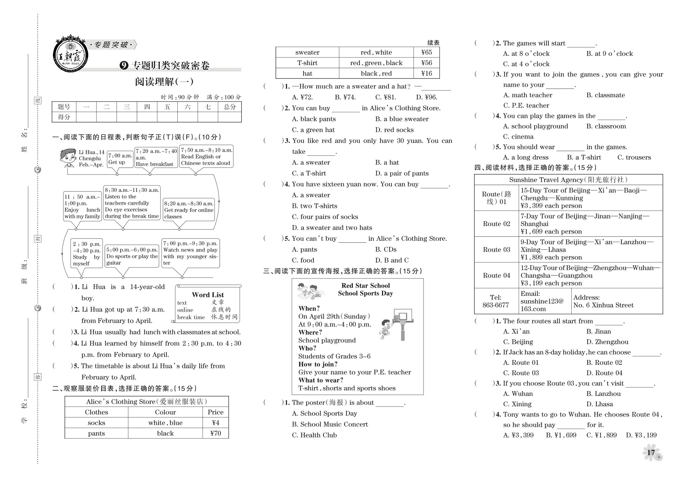 小升初英语·王朝霞专题归类突破密卷——阅读理解(一)_R211014165520160【9】