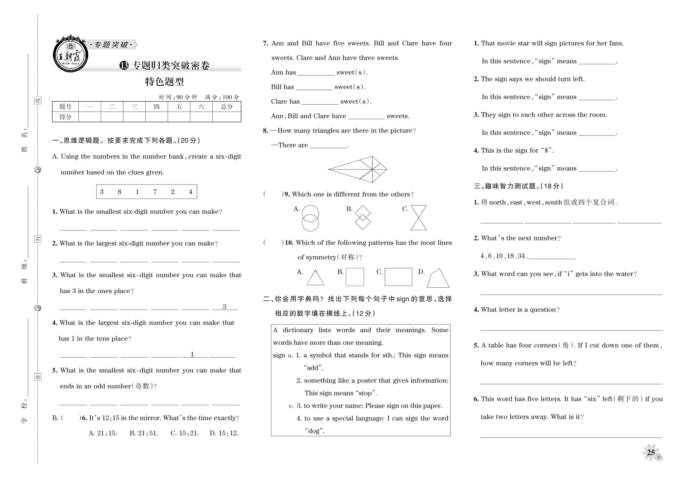 小升初英语·王朝霞专题归类突破密卷——特色题型_R211014165521641【13】