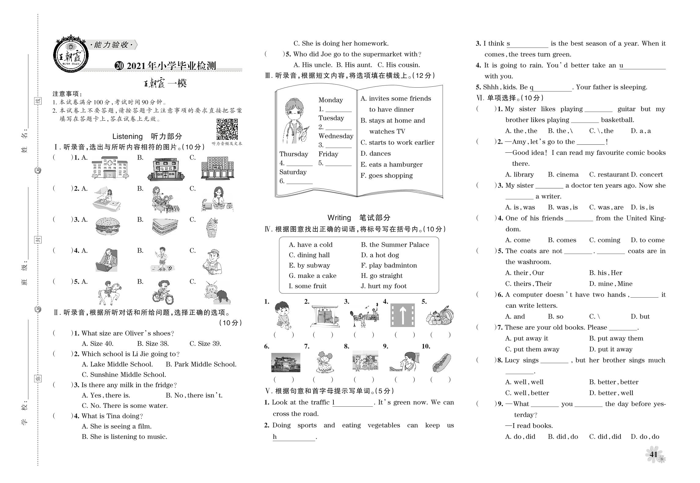 小升初英语小学毕业检测·王朝霞模拟卷【20】