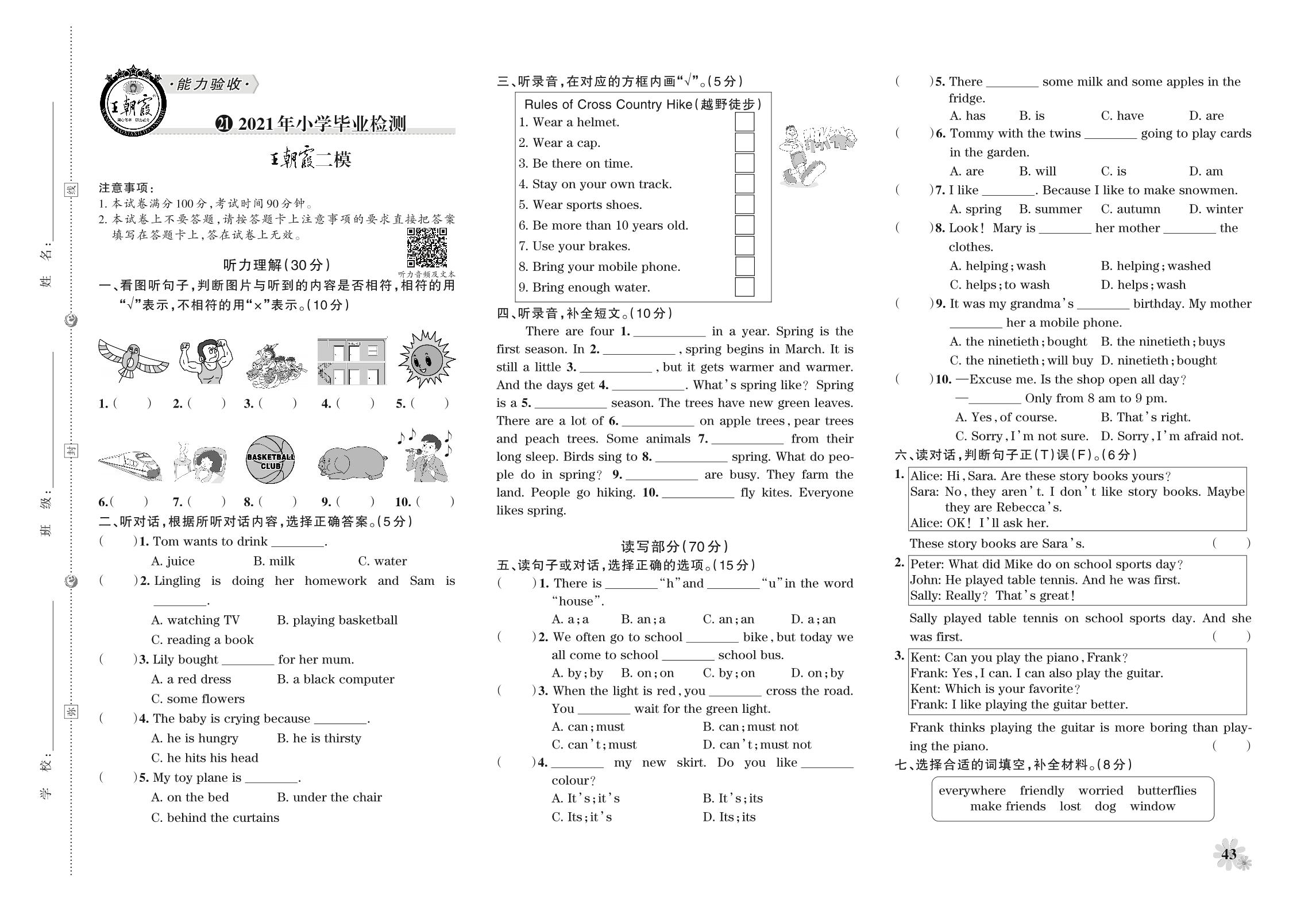 小升初英语小学毕业检测·王朝霞模拟卷【21】