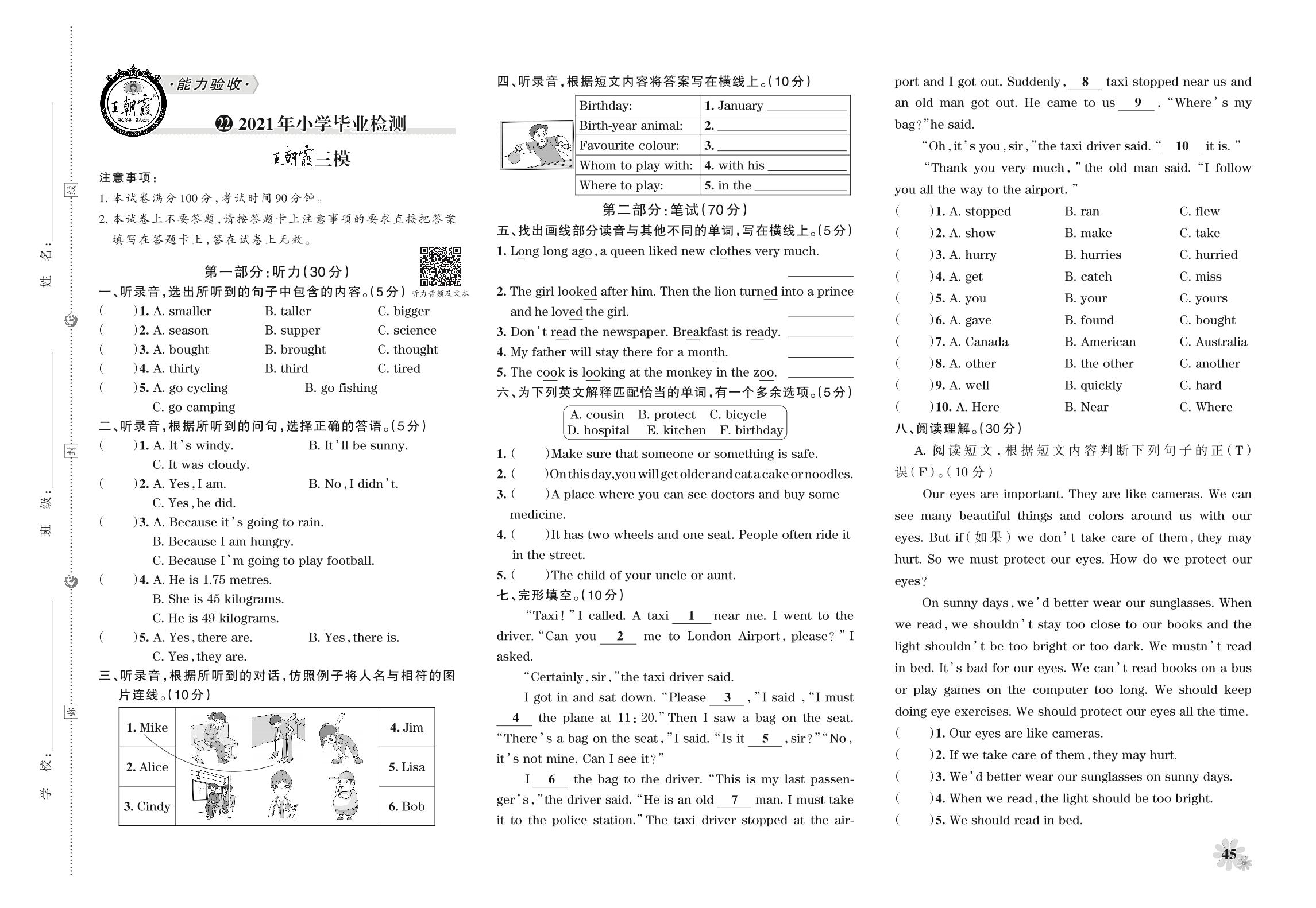 小升初英语小学毕业检测·王朝霞模拟卷【22】