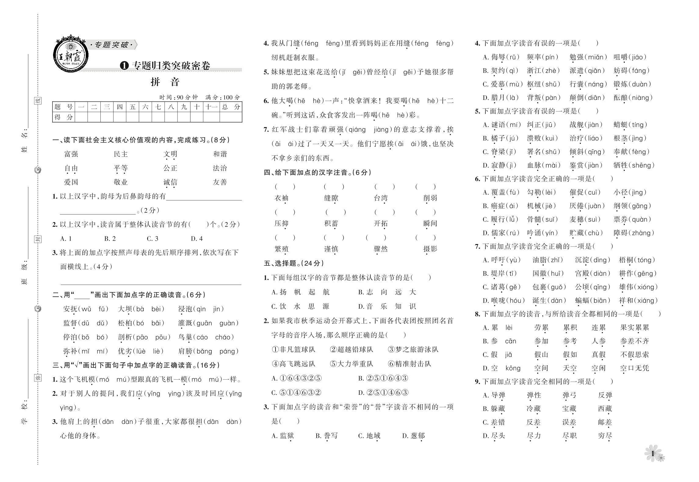 小升初语文·王朝霞专题归类突破密卷——拼音_R211014170032240【1】