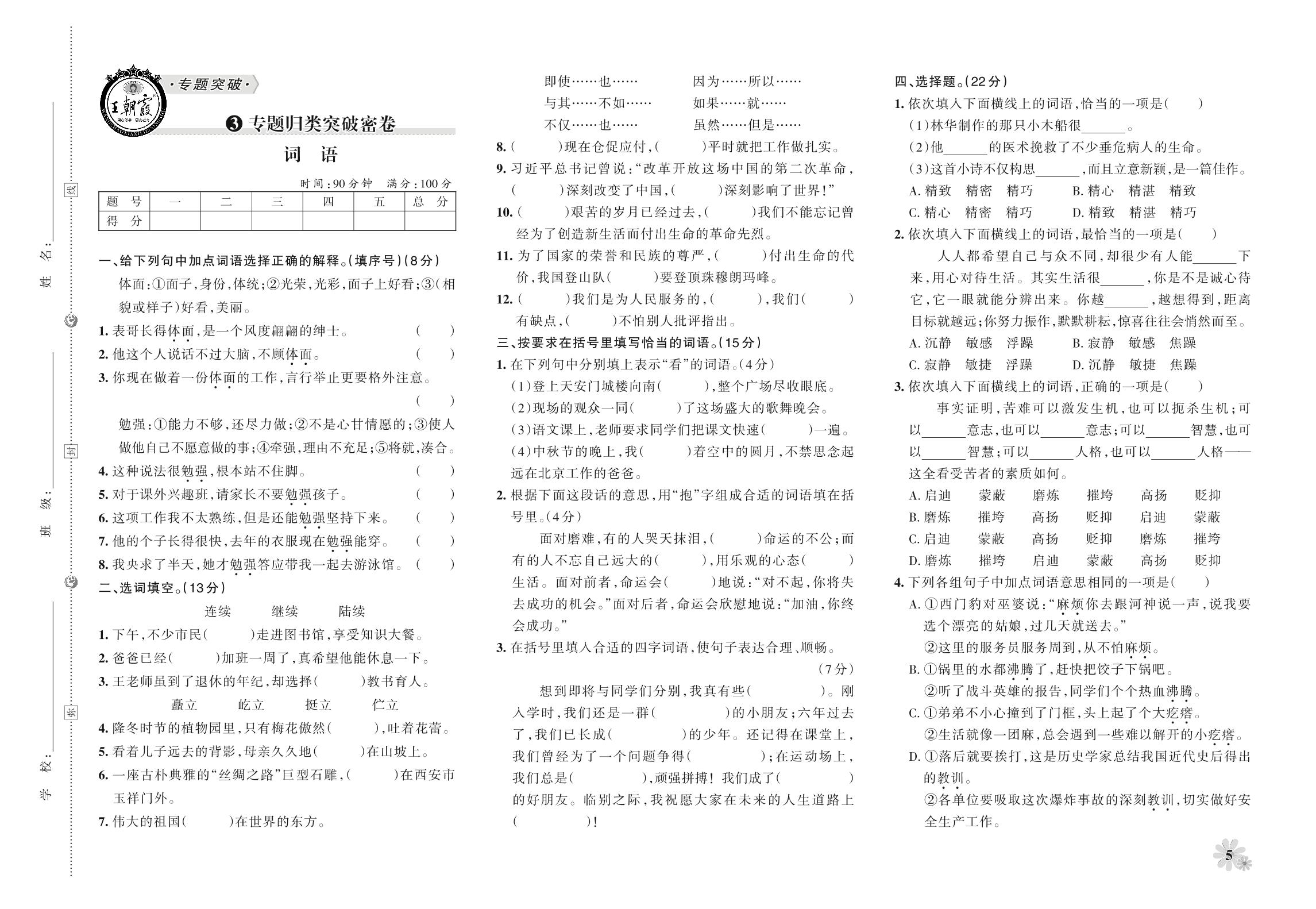 小升初语文·王朝霞专题归类突破密卷——词语_R211014170032134【3】