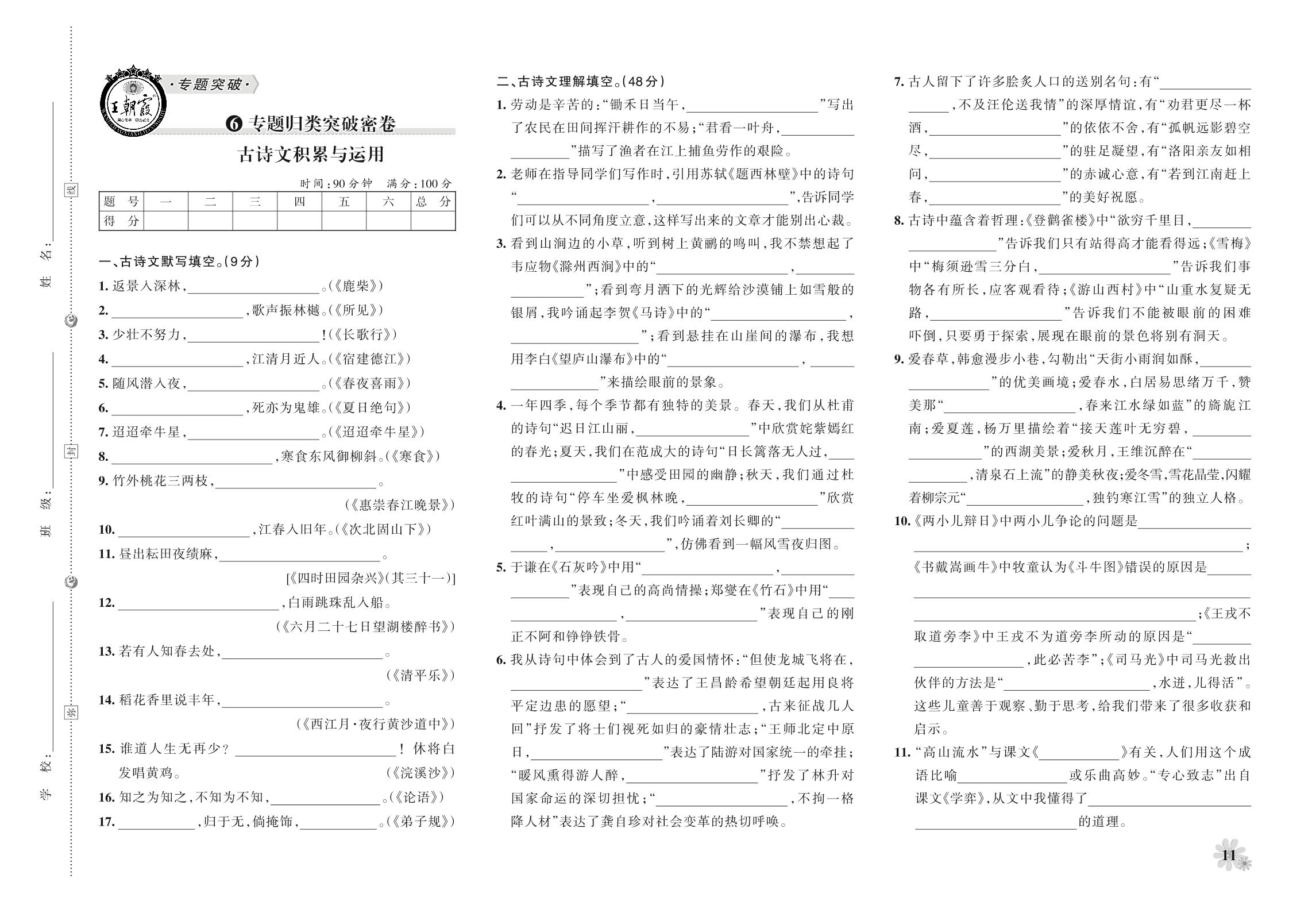 小升初语文·王朝霞专题归类突破密卷——古诗文积累与运用_R211014170032201【6】