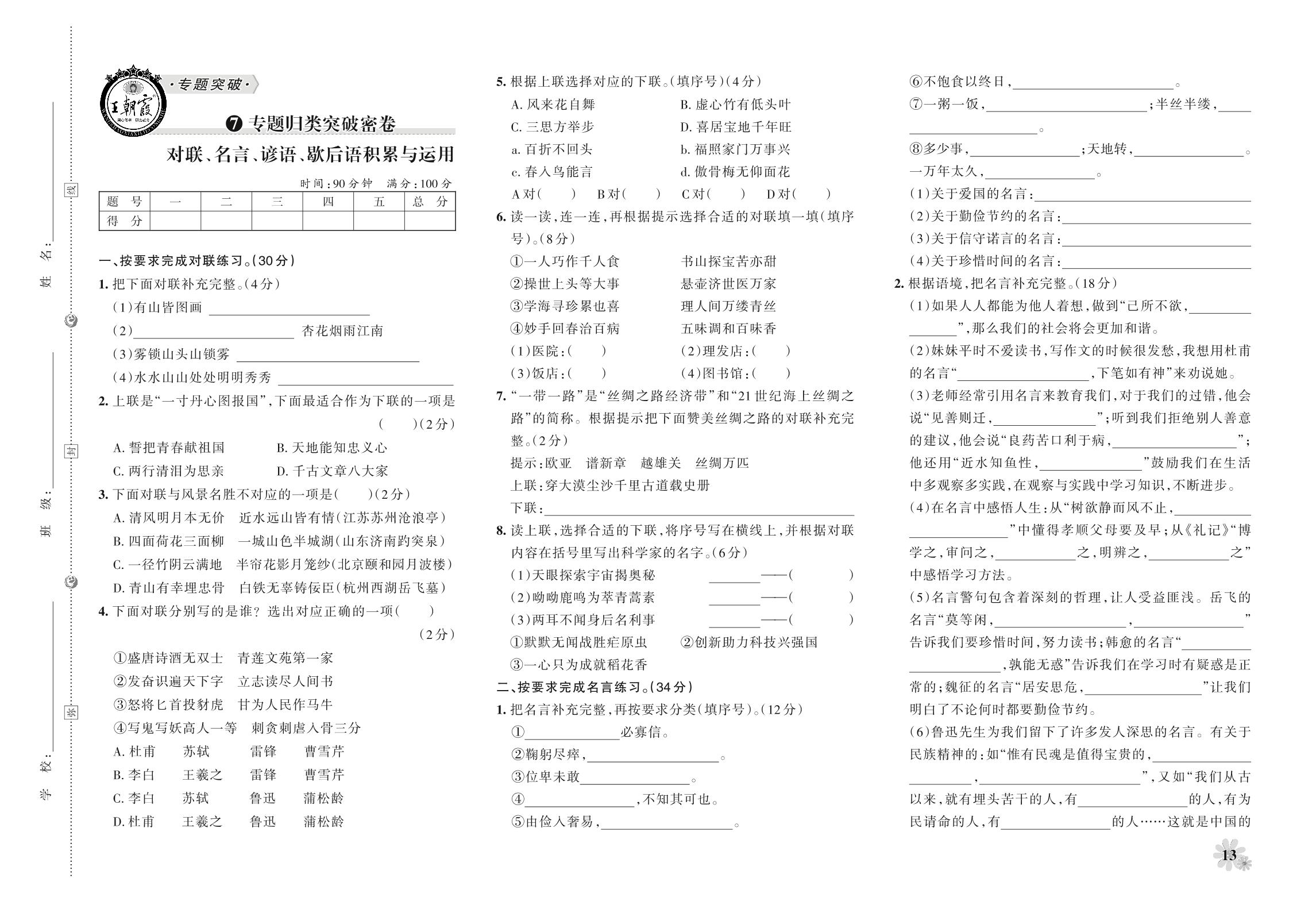 小升初语文·王朝霞专题归类突破密卷——对联、名言、谚语、歇后语积累与运用_R211014170032625【7】
