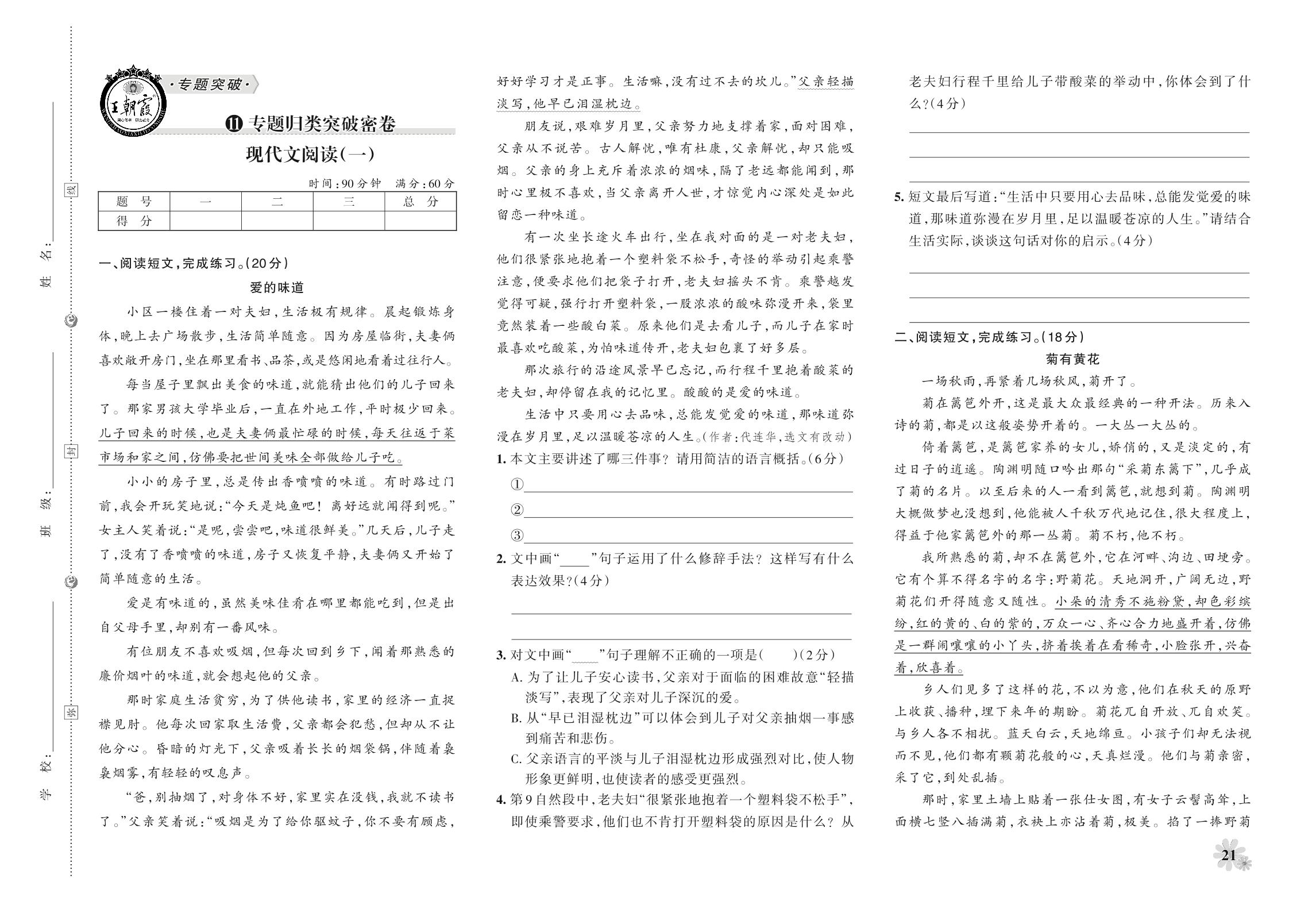 小升初语文·王朝霞专题归类突破密卷——现代文阅读(一)_R211014170033944【11】