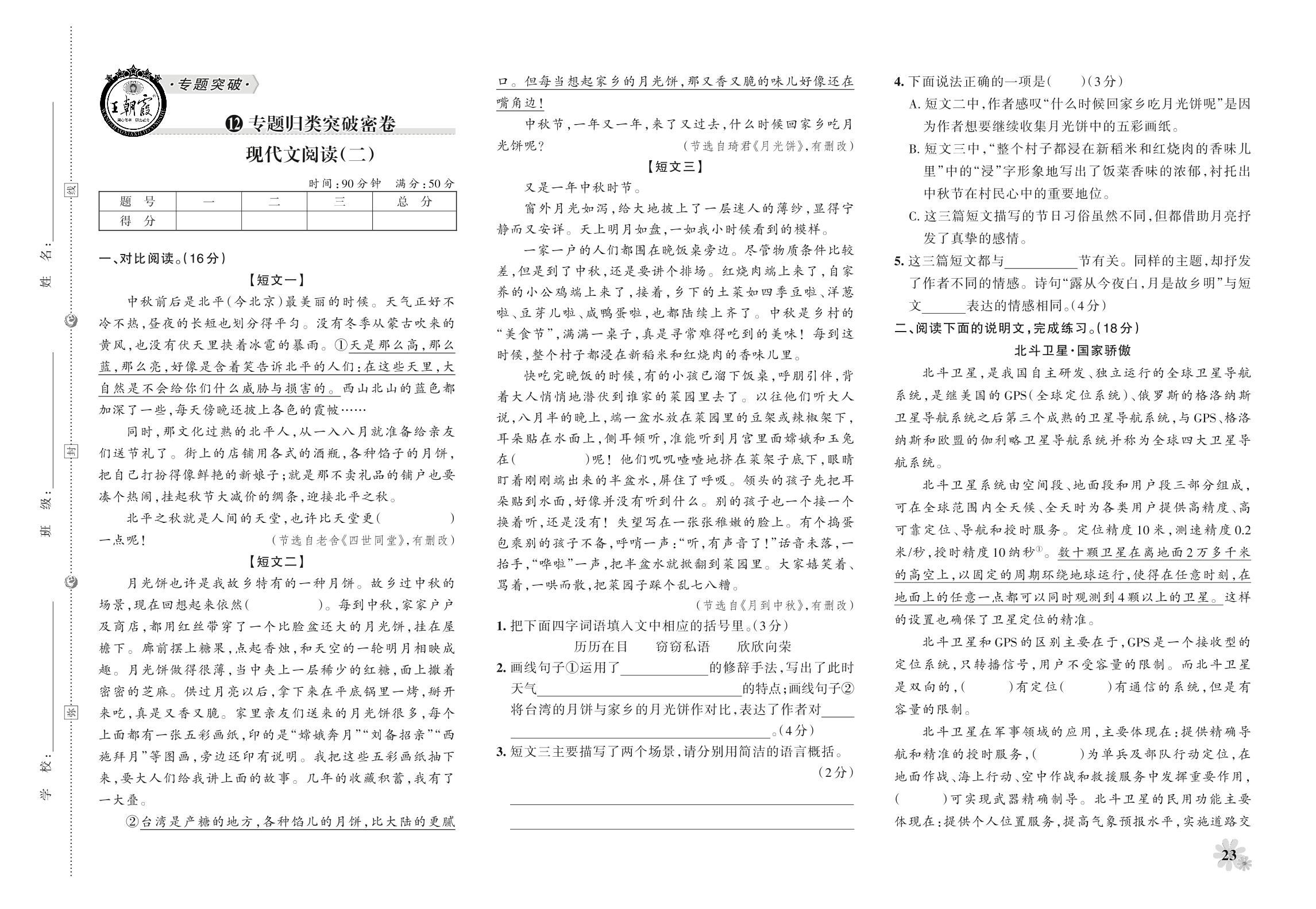 小升初语文·王朝霞专题归类突破密卷——现代文阅读(二)_R211014170033899【12】