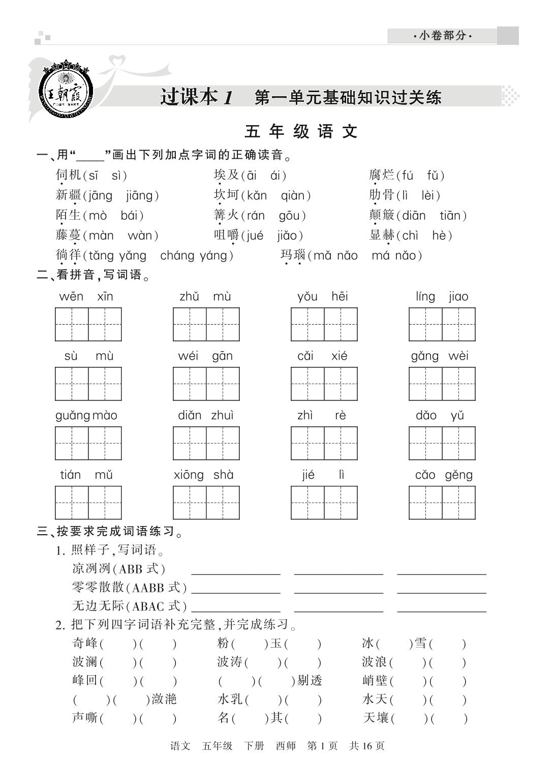王朝霞期末小卷五年级下册语文(西师版)_R210801194722【0】