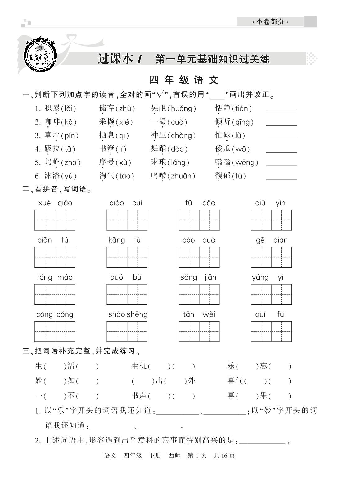 王朝霞期末小卷四年级下册语文(西师版)_R210801194818【0】